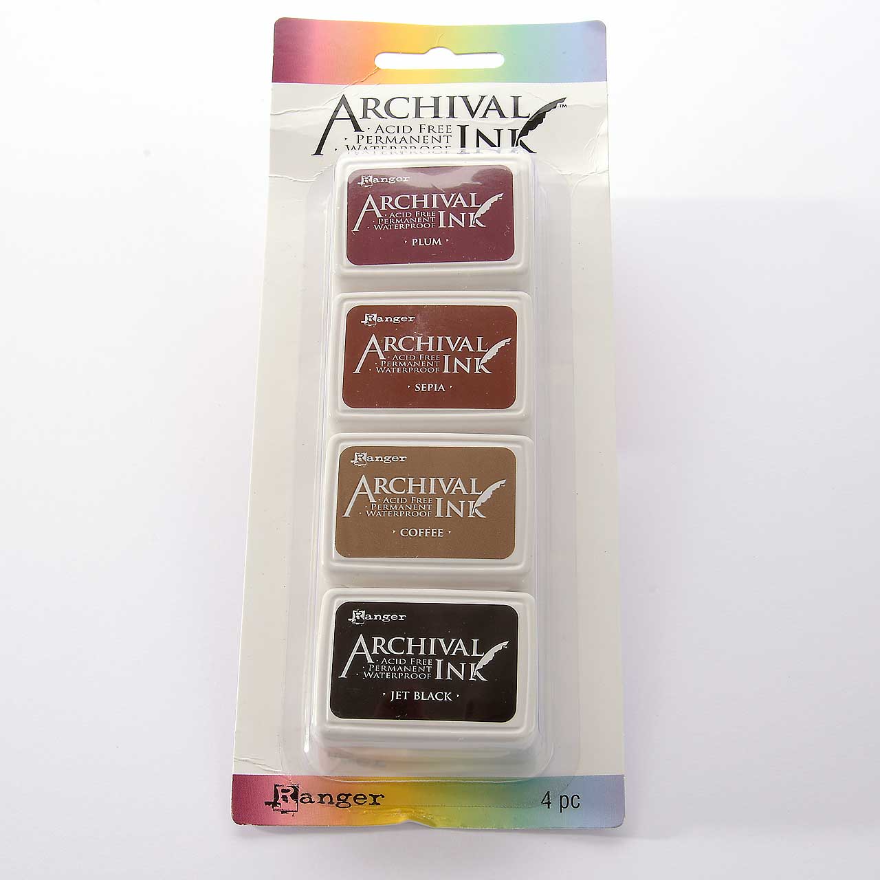 4 Mini-Stempelkissen - Set 2 Pflaume, Sepia, Milchkaffeebraun, Schwarz