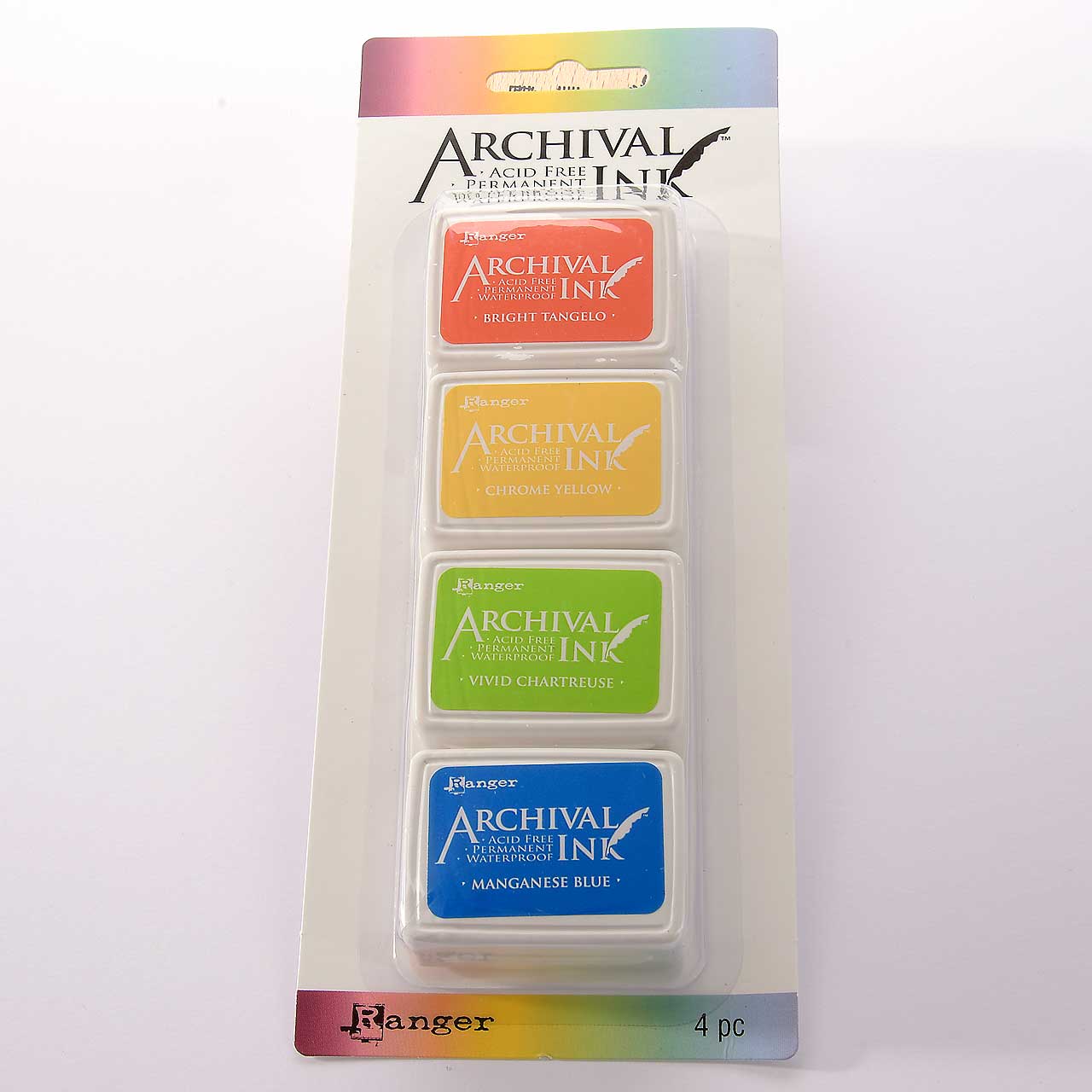 Produktinformationen "4 Mini-Stempelkissen - Set 3 Hellorange, Chromegelb, Gelbgrün, Manganblau"