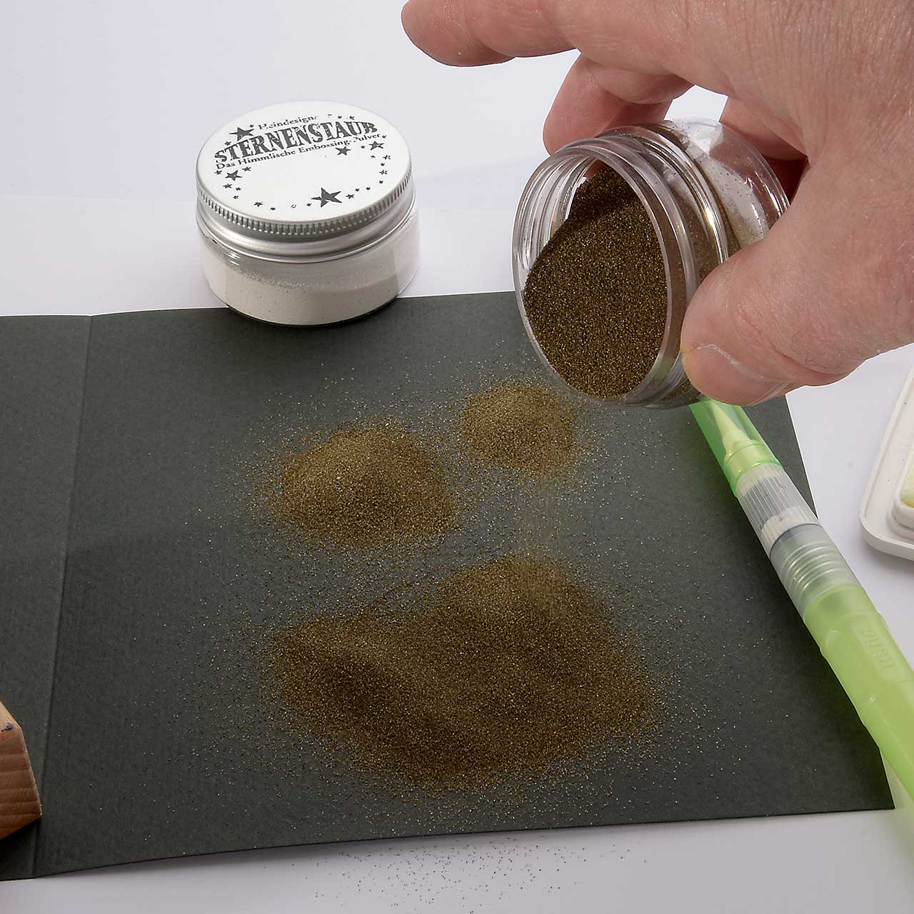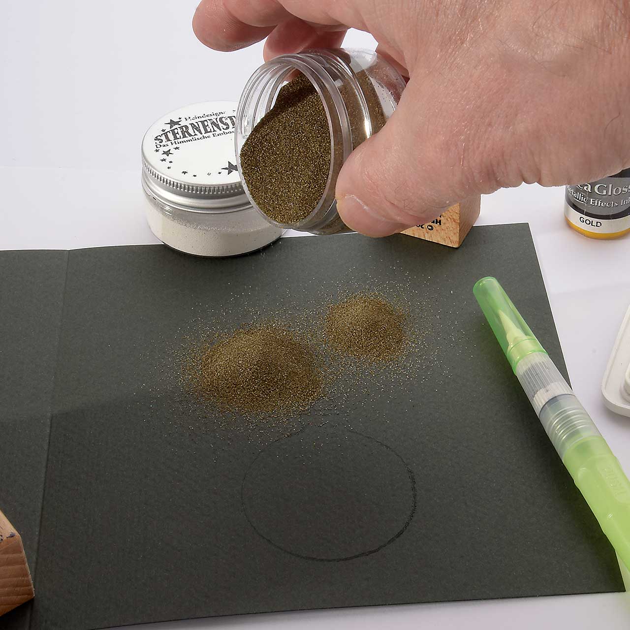 Geben Sie reichlich goldenen Sternenstaub auf die drei Stempelabdrucke.