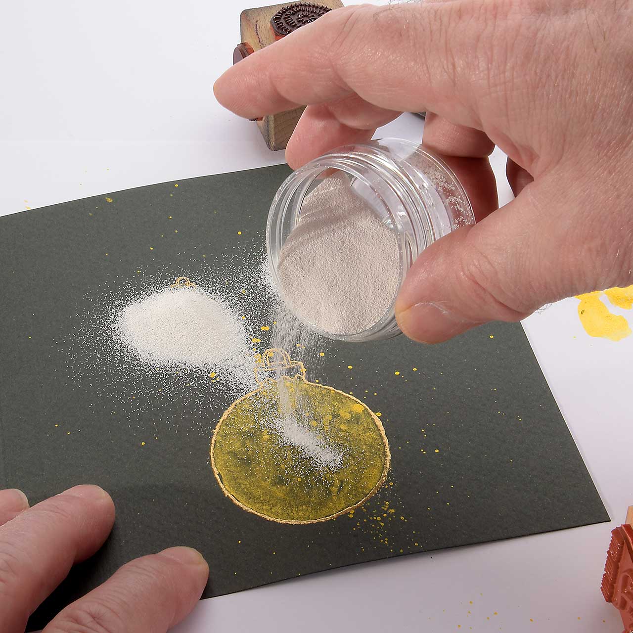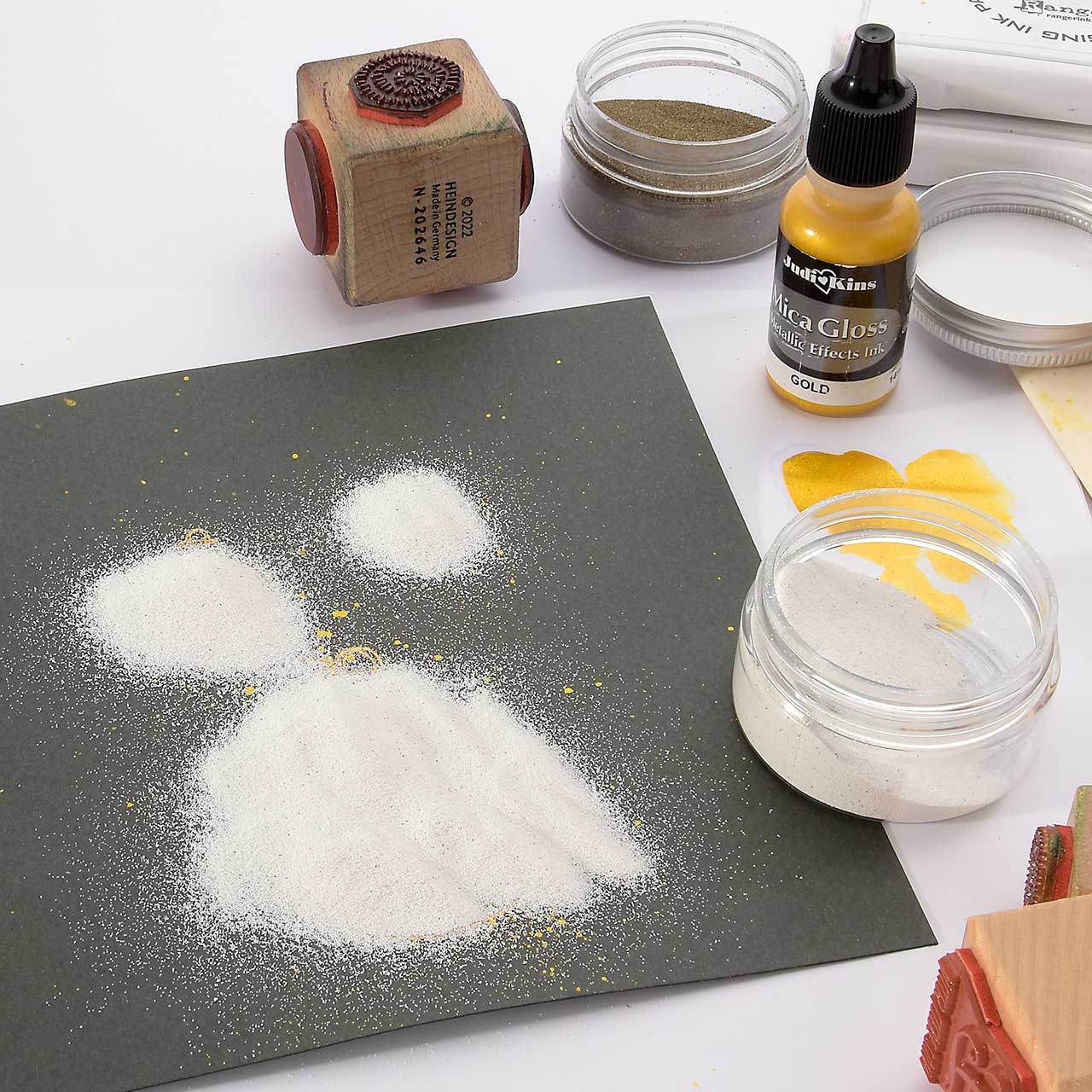 Geben Sie reichlich weißen Sternenstaub auf die drei Stempelabdrucke.