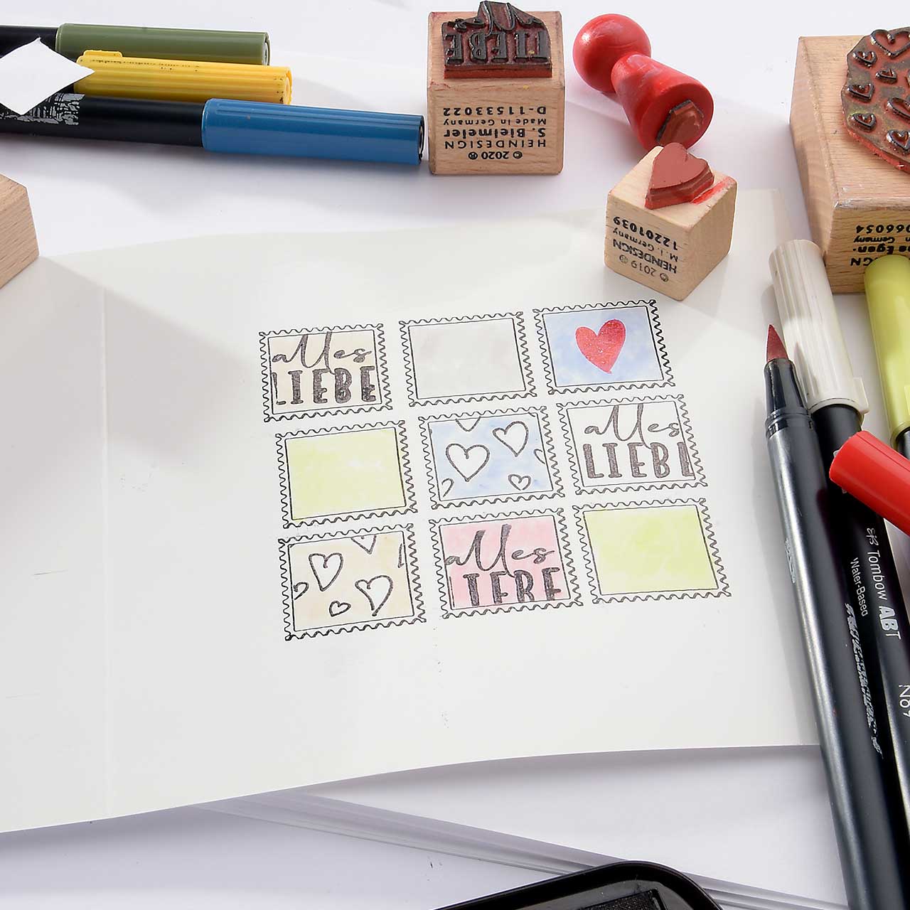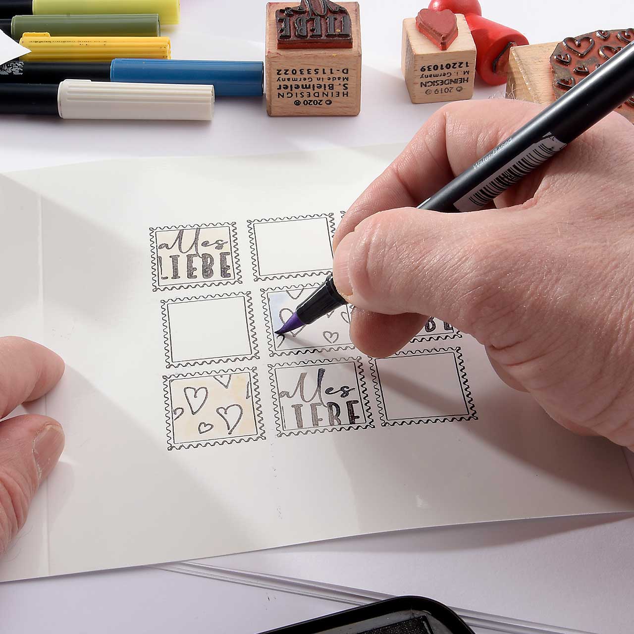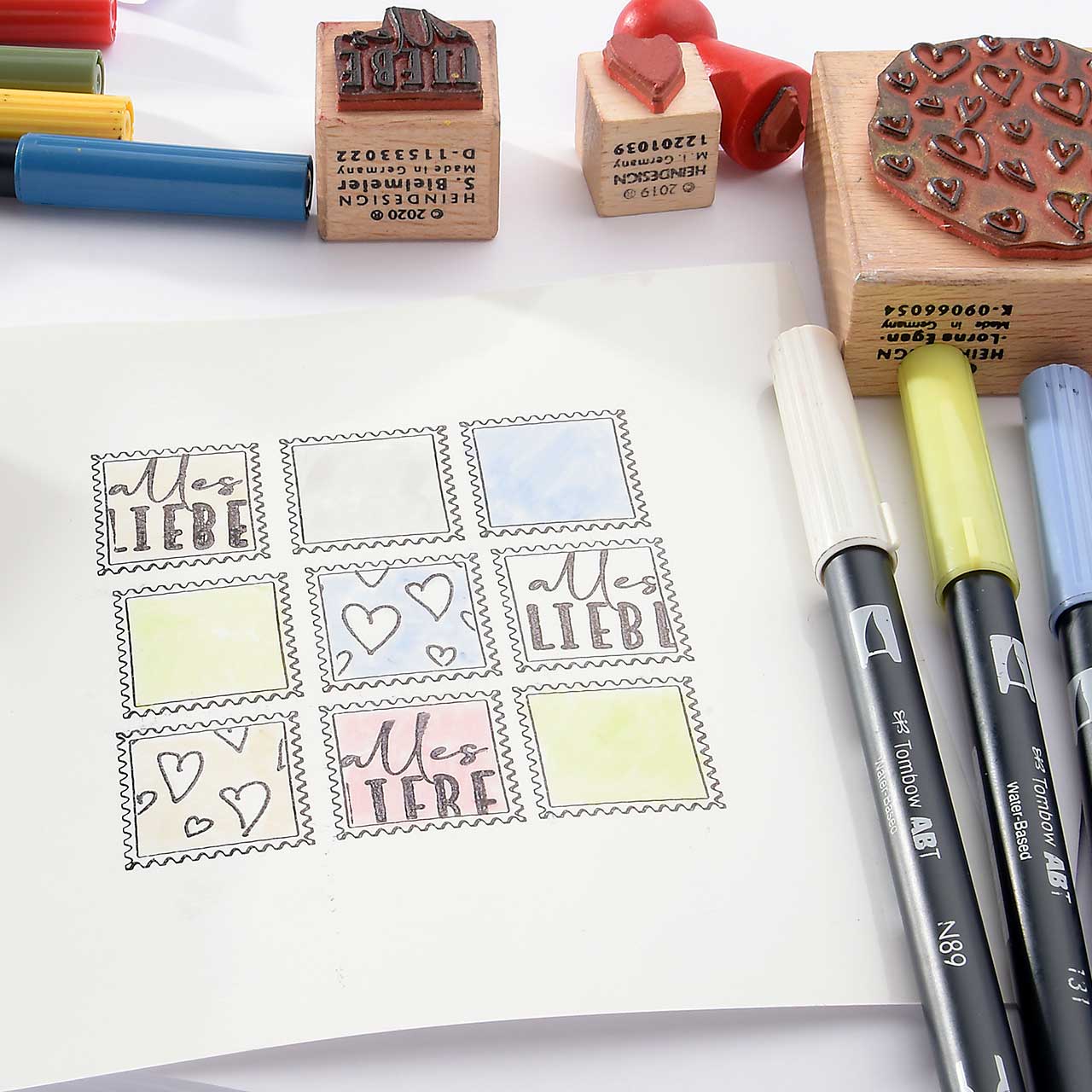 Kolorieren Sie die Briefmarken mit den Dual Brushpen Faserschreibern (ABT).