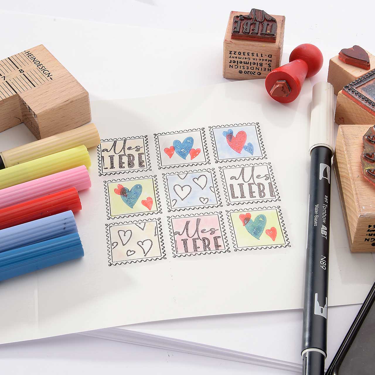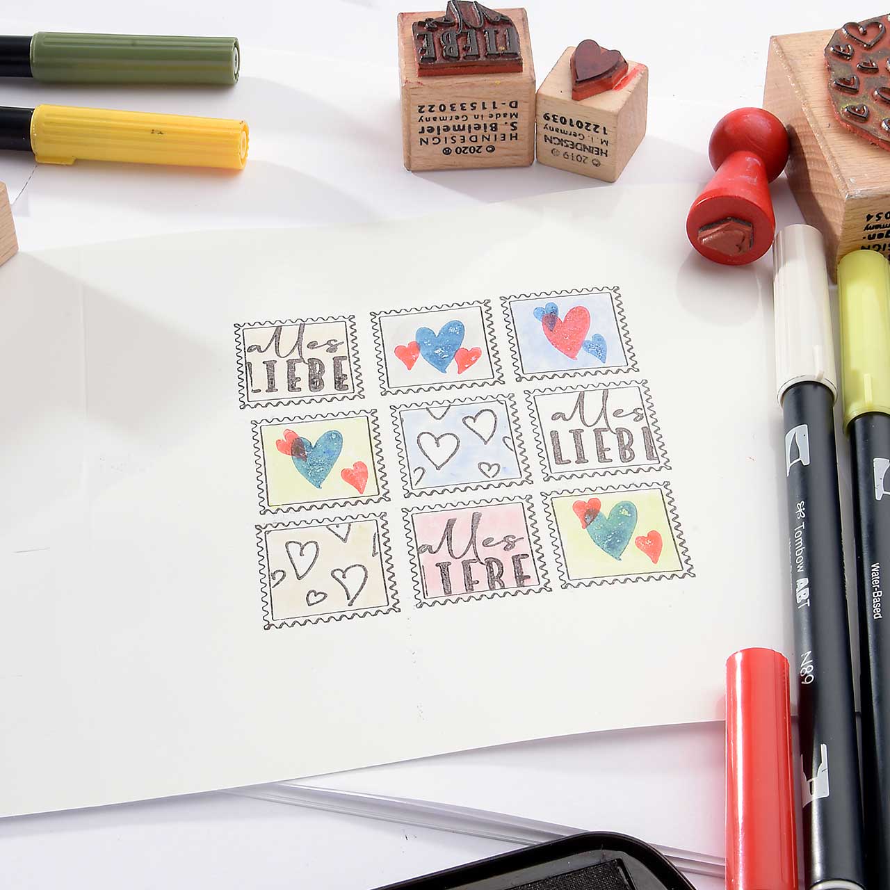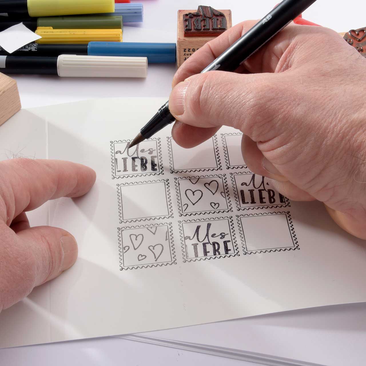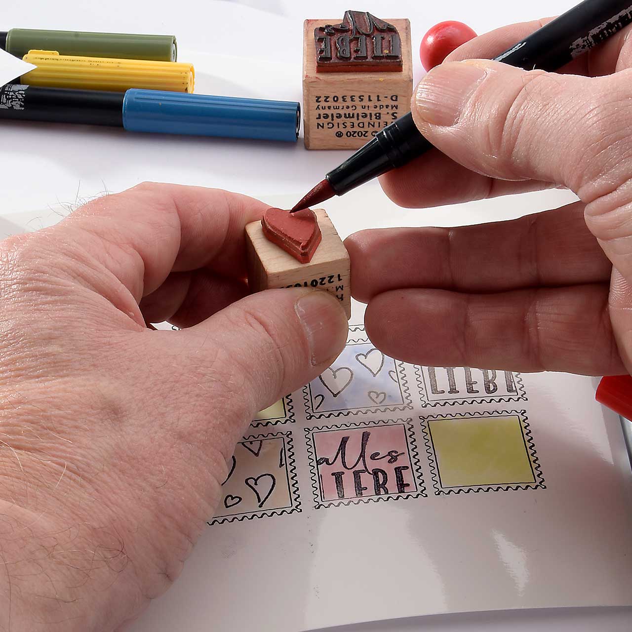 Kolorieren Sie die Briefmarken mit den Dual Brushpen Faserschreibern (ABT).