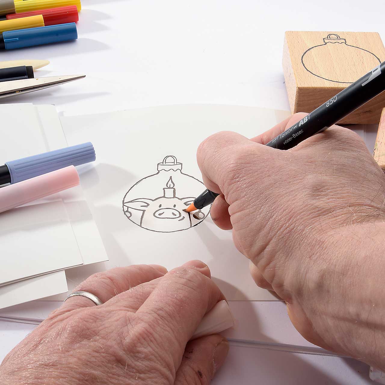 Kolorieren Sie das Christbaumkugel Motiv mit den Tombow Dual Brushpen Faserschreibern (ABT).