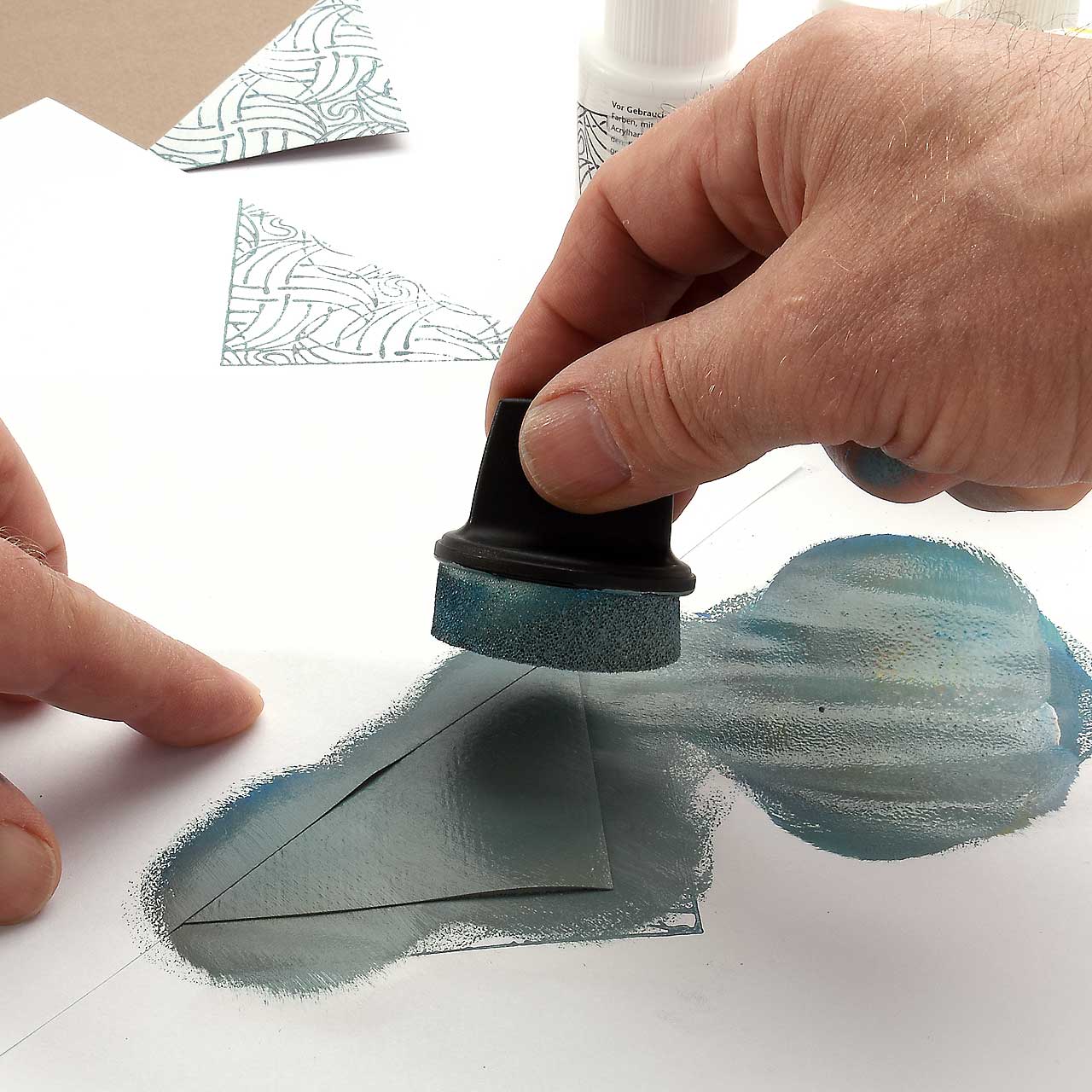 Reinigen Sie den Stempel und das Schwämmchen sofort mit reichlich Wasser.