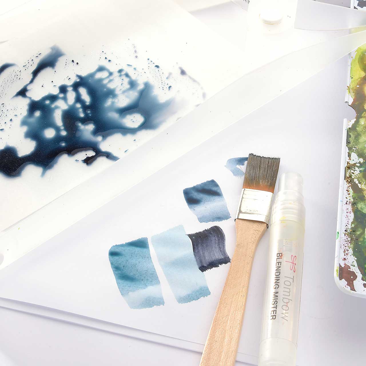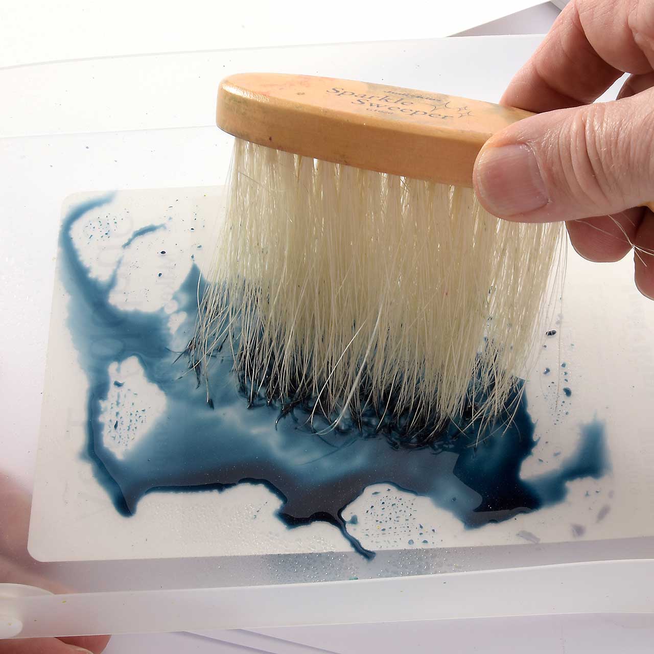 Mischen Sie mit dem Pinsel blaue und schwarze Farbe im Snappy Tray (es braucht relativ viel Farbe für den großen, breiten Feger).
