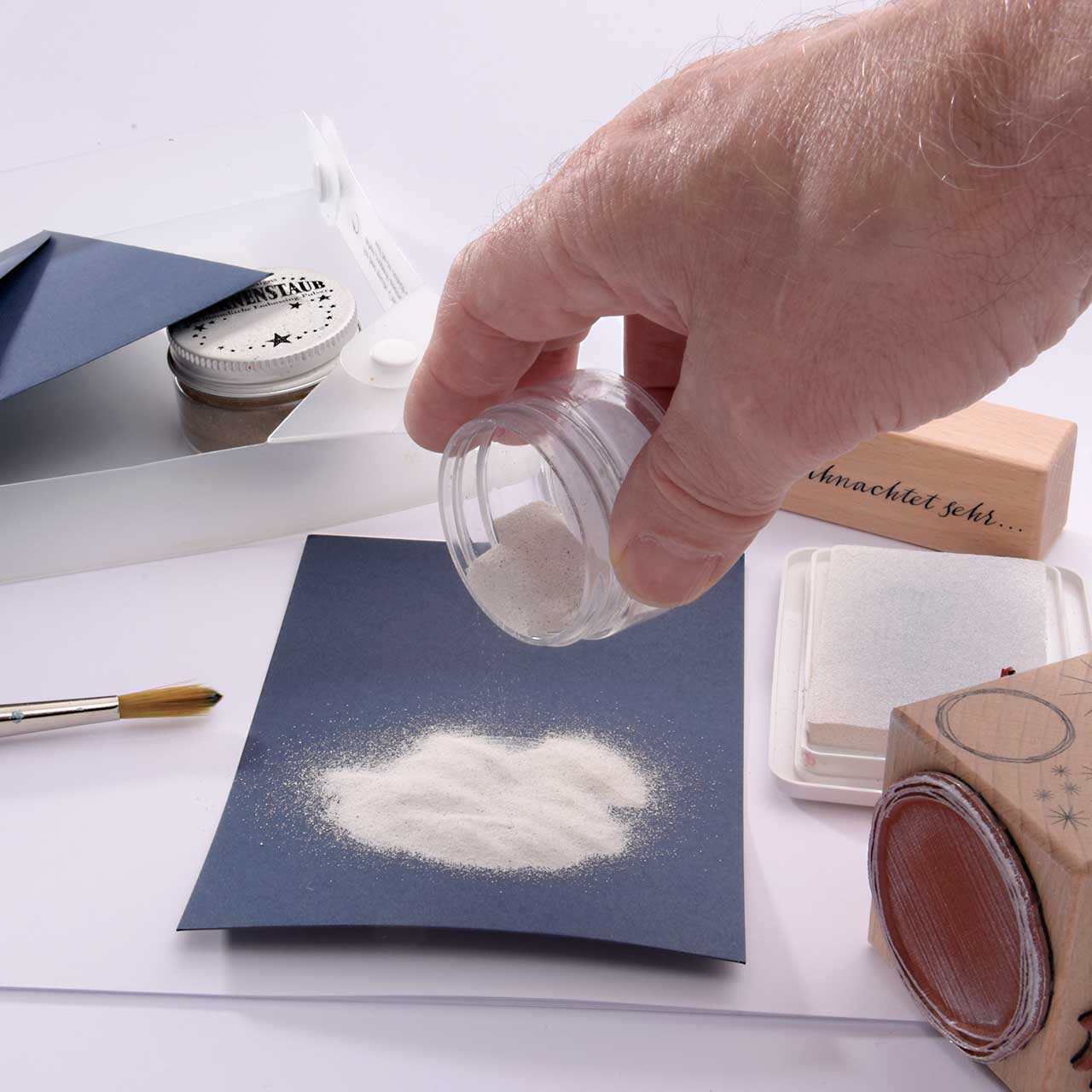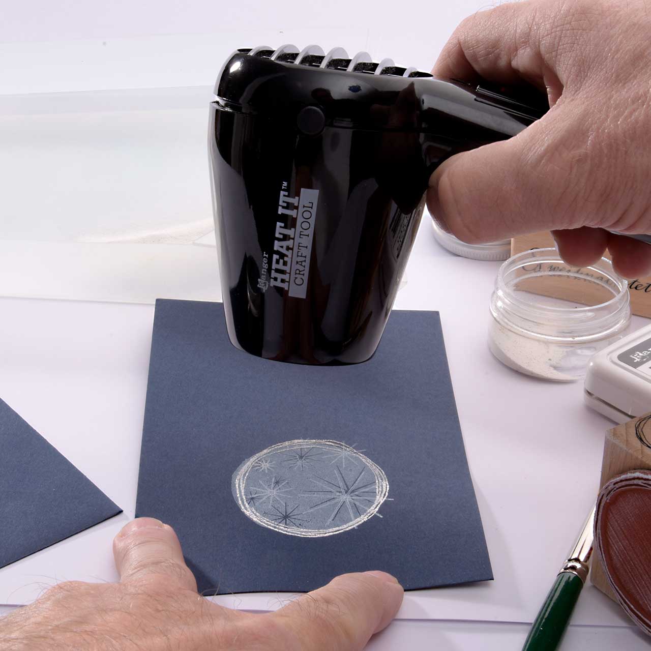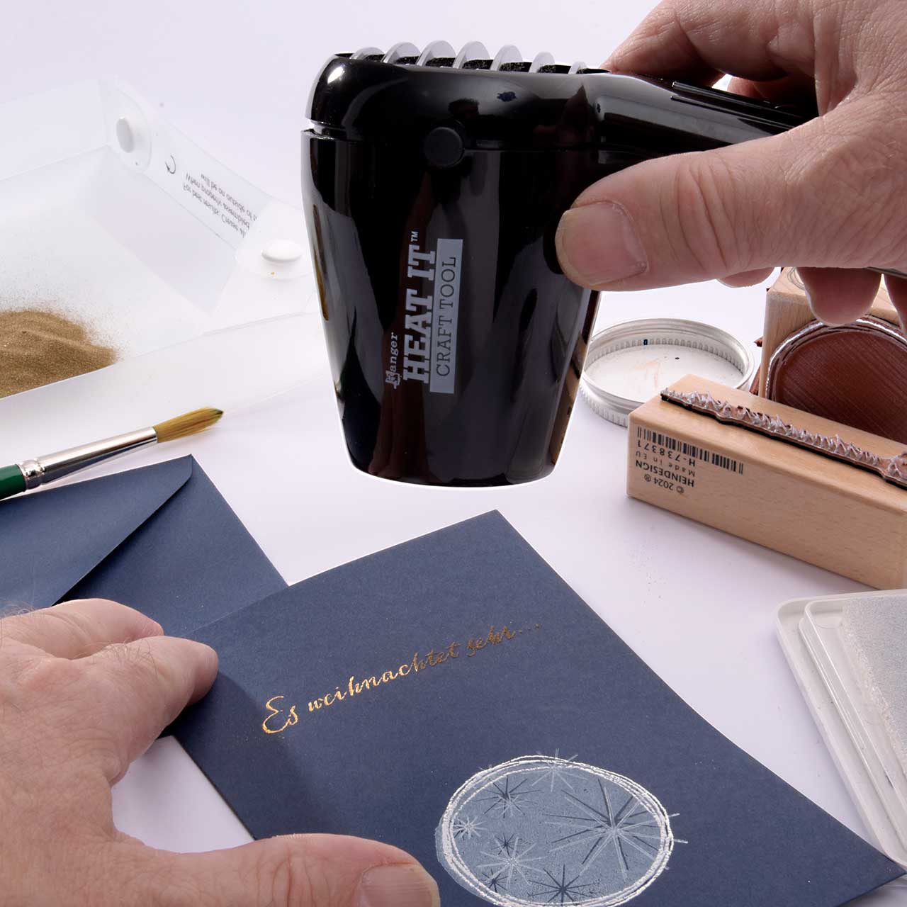 *Die weiße Farbe aus dem Pigment-Stempelkissen lässt sich leicht und schnell mit dem Heißluftgerät trocknen und fixieren.