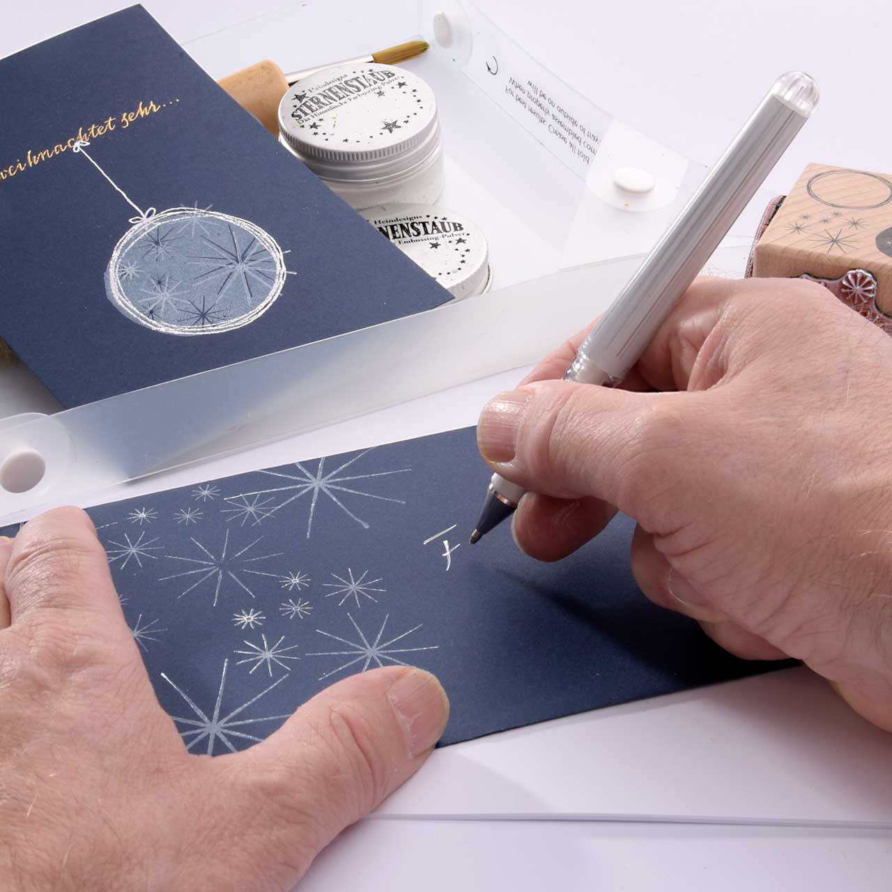 Zusätzlich benötigtes Material oder Werkzeug: weißer, feiner Gel- oder Lackstift