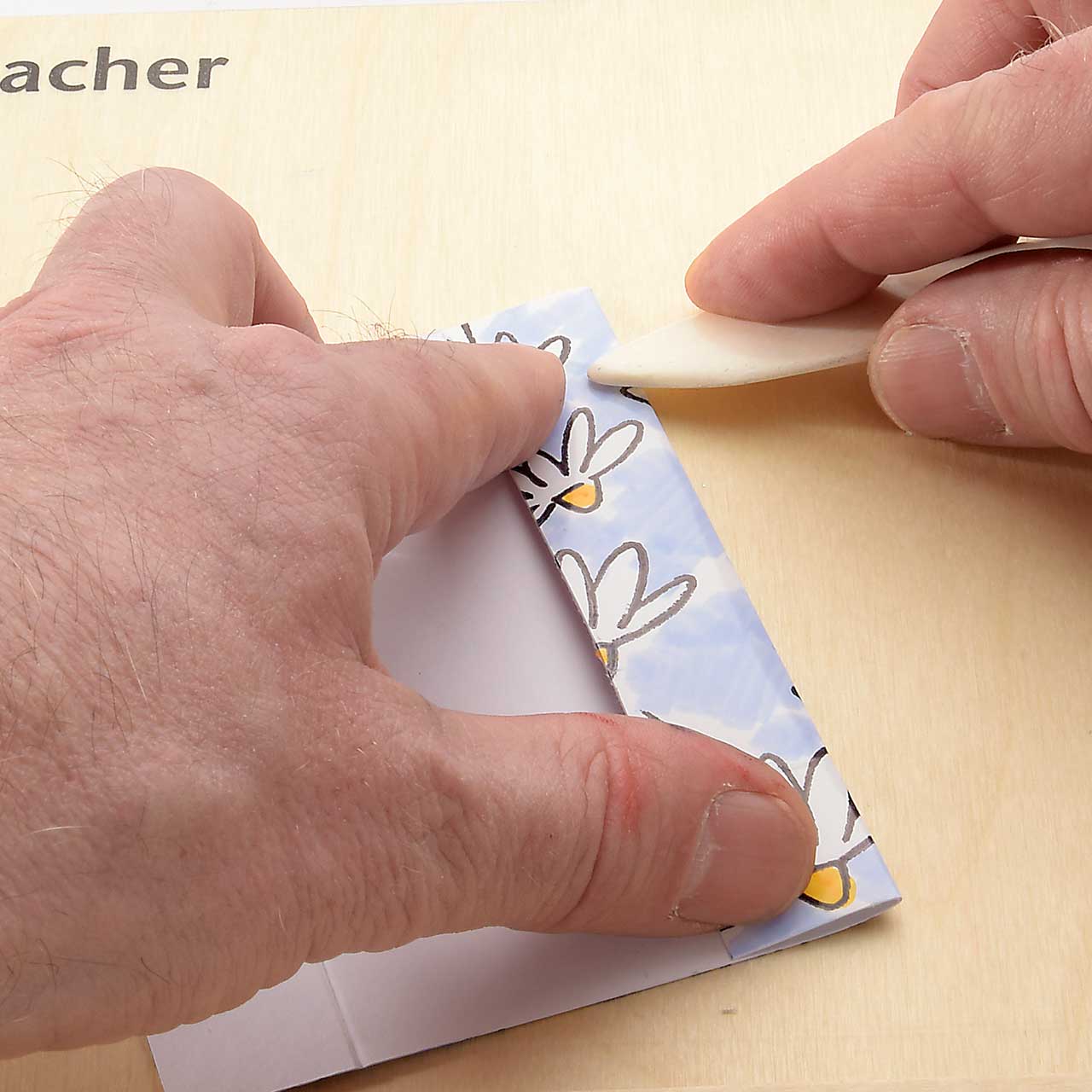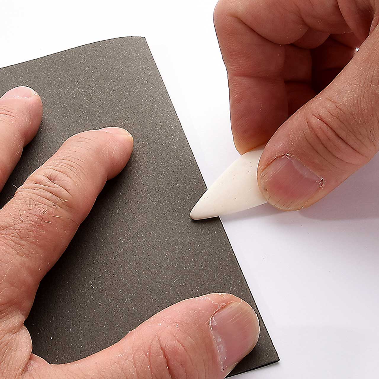 Das Falzbein ist ein nützliches Werkzeug aus der Buchbinderwerkstatt. Es wird, wie seit Jahrhunderten, aus Knochen gefertig. Dadurch bekommt das Falzbein die Festigkeit und jene Oberfläche, die dem Papier schmeichelt.