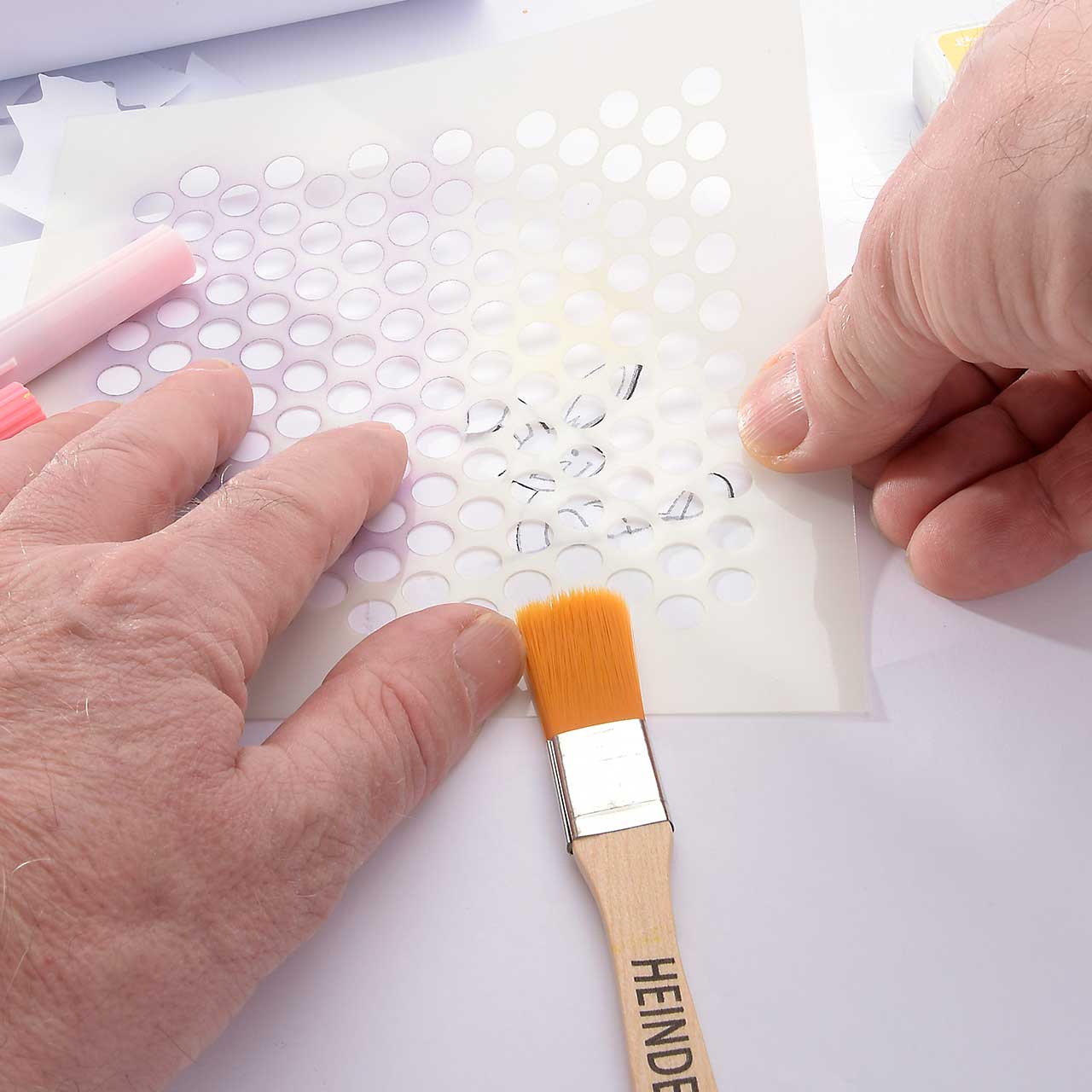 Entfernen Sie die Schablone, das Papier und die Maske auf dem Hasi Motiv.