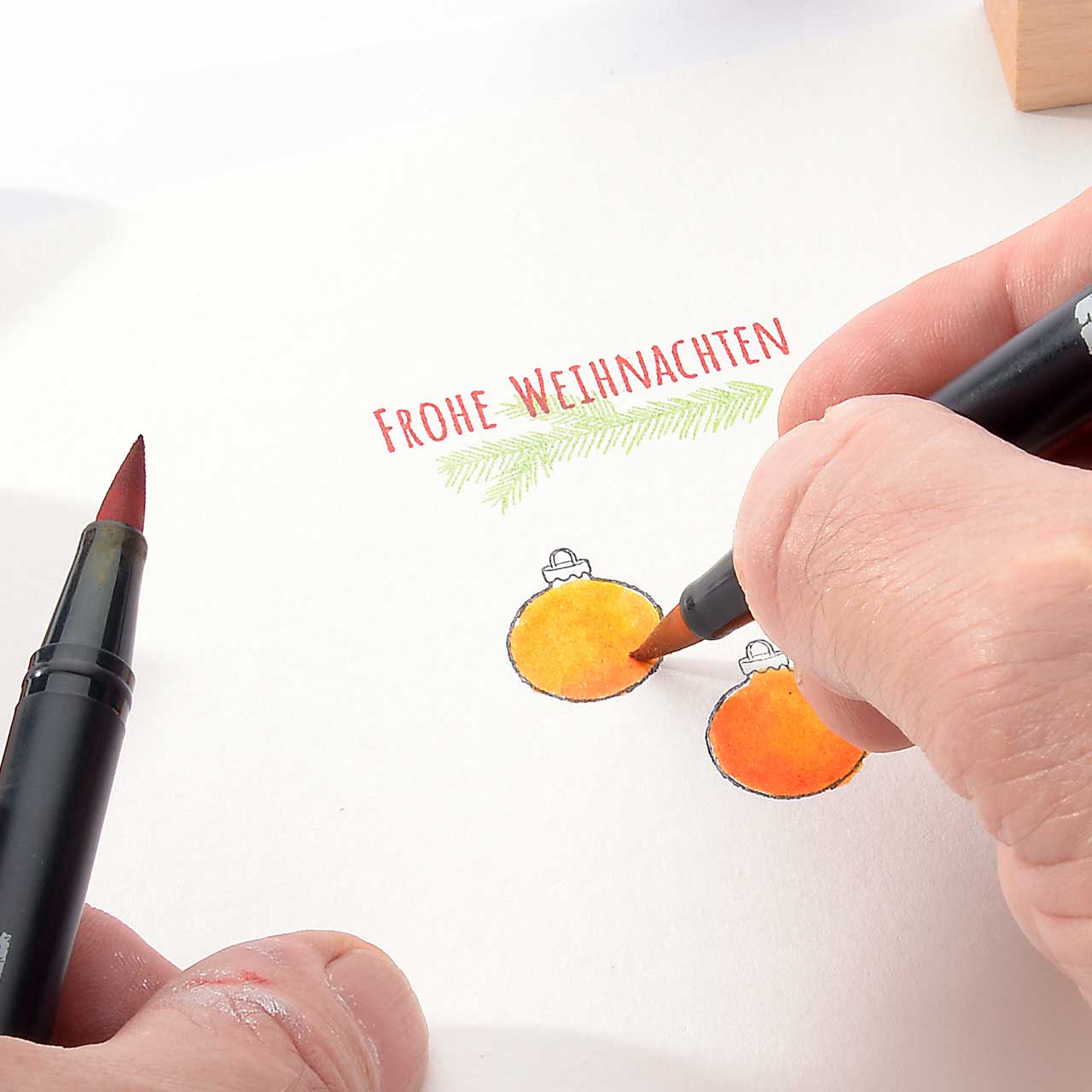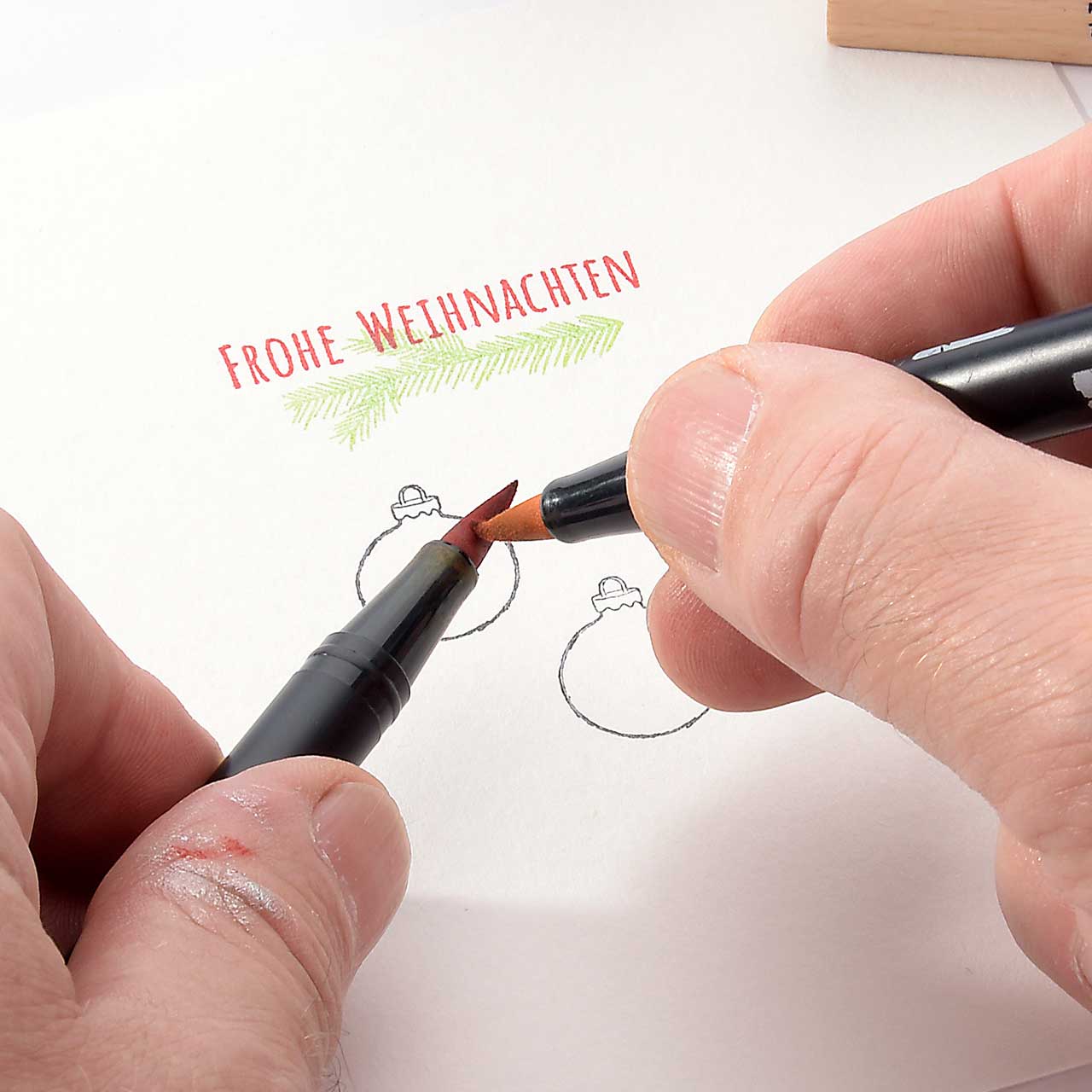 Kolorieren Sie die Christbaumkugel Motive mit den Tombow Dual Brushpen Faserschreibern (ABT).