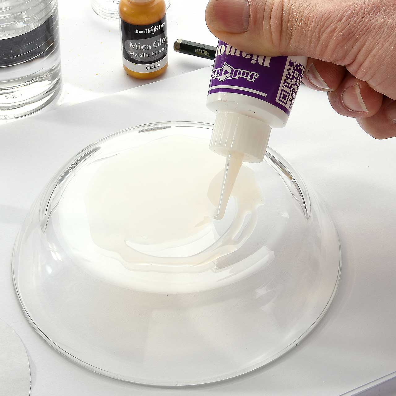 Sorgen Sie dafür, dass das Glasschälchen 100% waagerecht liegt. Bedecken Sie den Glasschälchenboden mit einer dicken, blasenfreien Schicht Diamond Glaze.