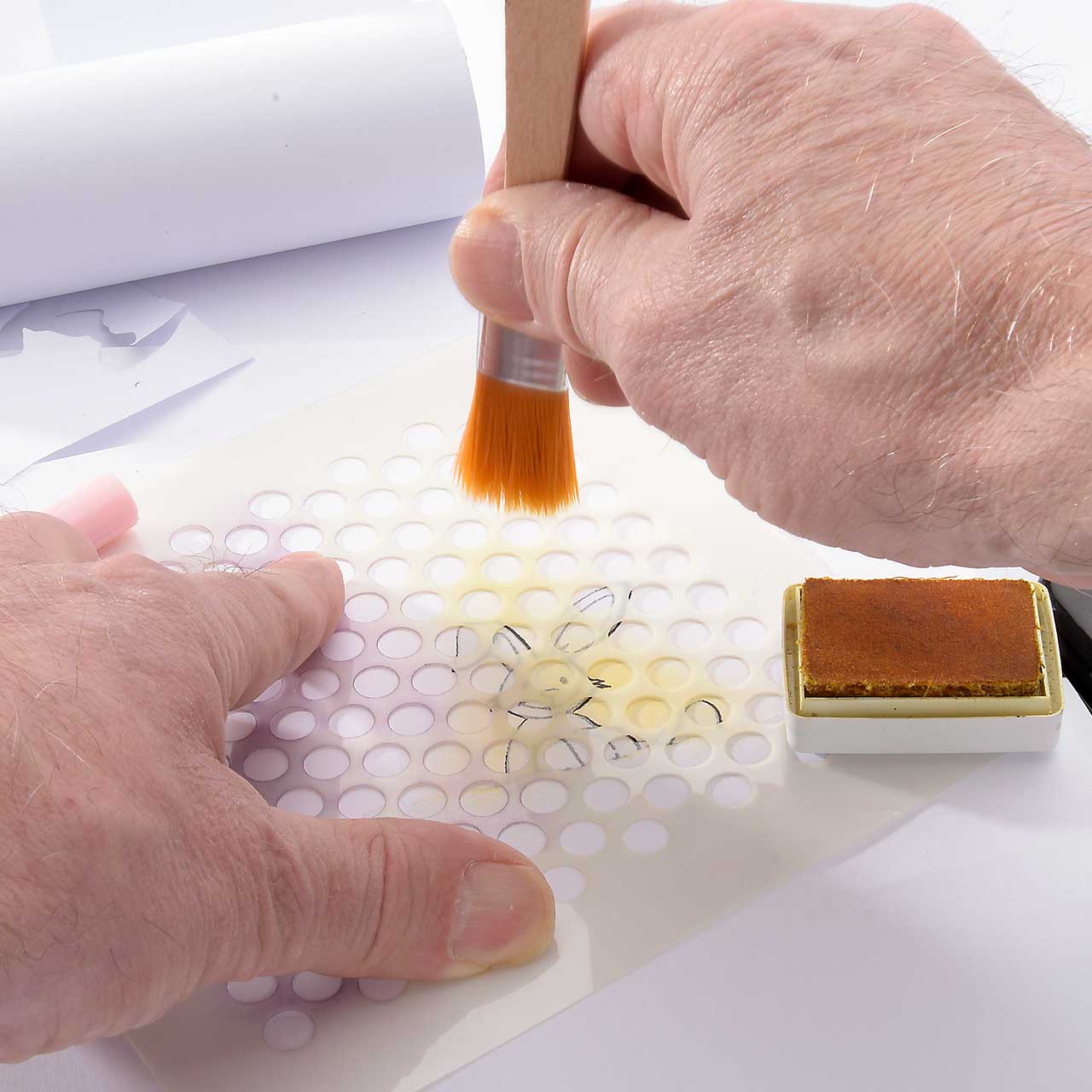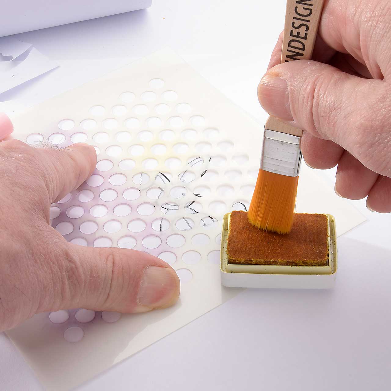 Die stabile Folie aus der die Schablonen bestehen, ist sehr fest und doch hauchdünn. So können Sie gut zwei Schablonen übereinander verwenden.