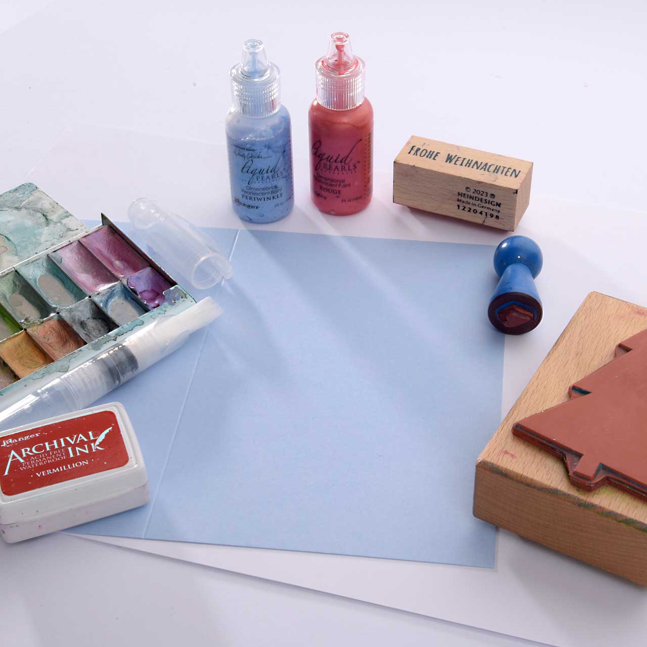 * Die Liquid Pearls brauchen etwas länger zum Trocknen und die fertigen Tropfen vertragen keinen Druck. Legen Sie keinen anderen Karten darauf, legen Sie sie nicht in ein Buch o.ä., ein Briefumschlag ist ok, solange der nicht beschwert wird.