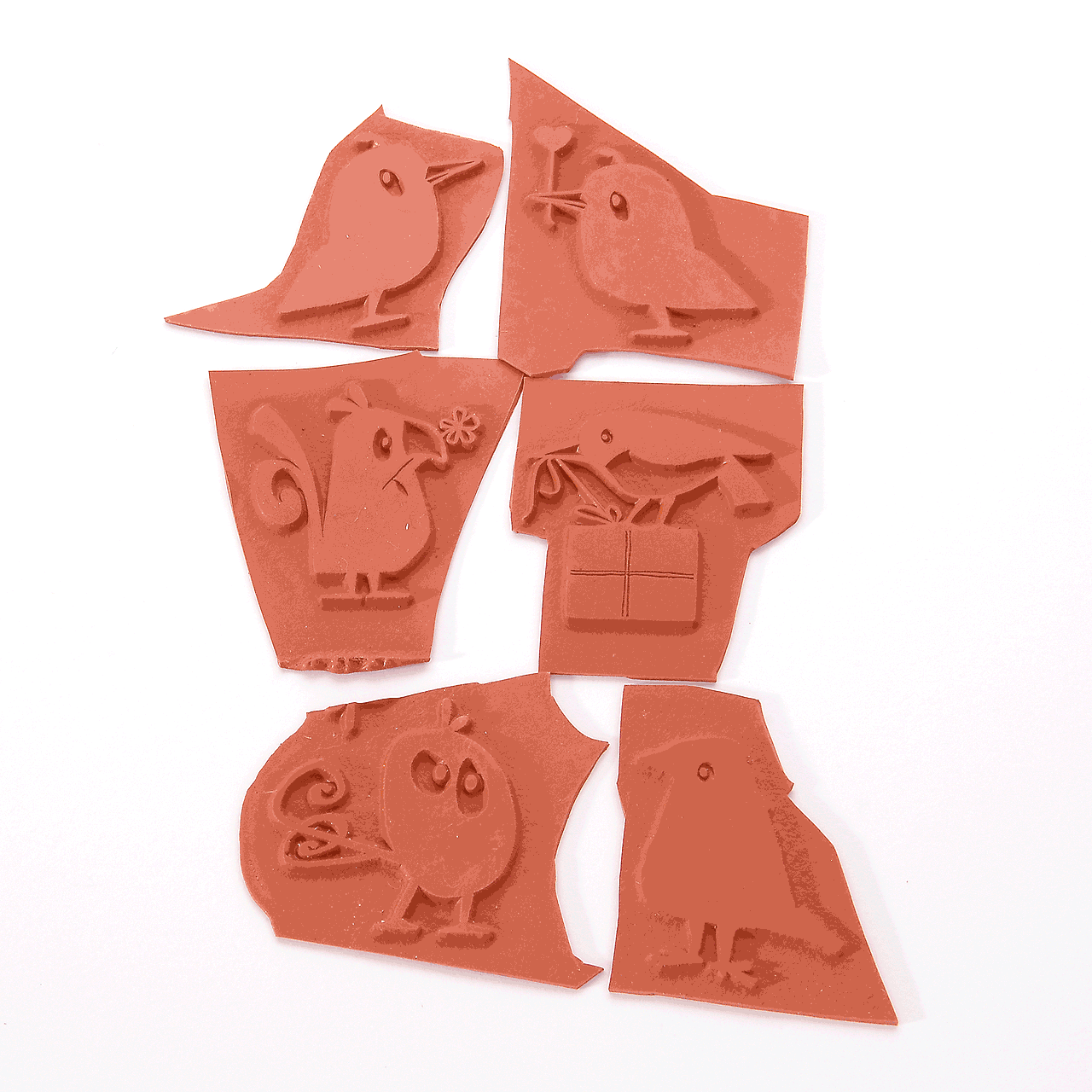 Vulkanisierte Stempelgummis mit einem tiefen Relief für die Selbst-Montage auf Handgriffe aus Holz oder Kunststoff.