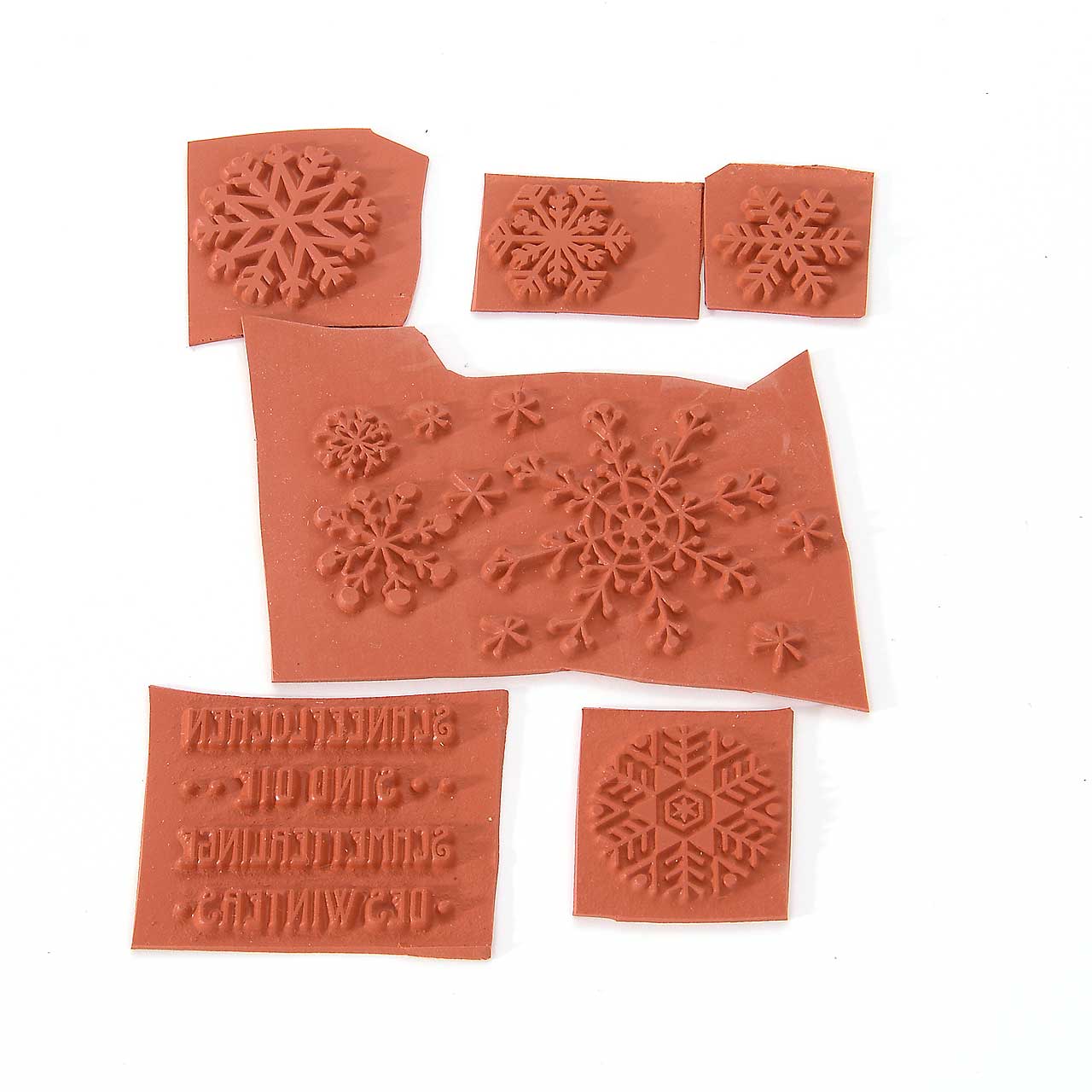 Vulkanisierte Stempelgummis mit einem tiefen Relief für die Selbst-Montage auf Handgriffe aus Holz oder Kunststoff.