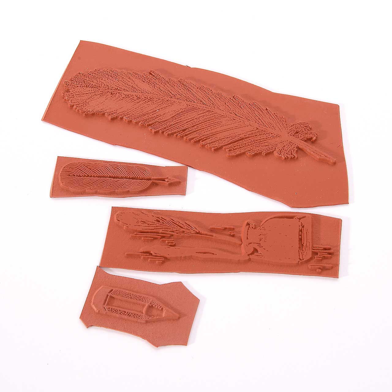 Vulkanisierte Stempelgummis mit einem tiefen Relief für die Selbst-Montage auf Handgriffe aus Holz oder Kunststoff.