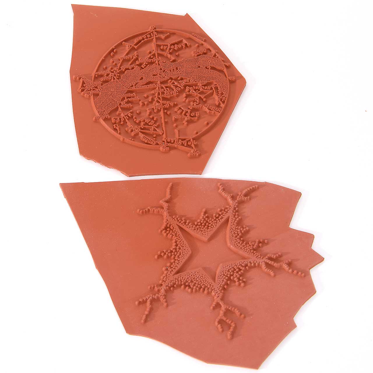 Vulkanisierte Stempelgummis mit einem tiefen Relief für die Selbst-Montage auf Handgriffe aus Holz oder Kunststoff.