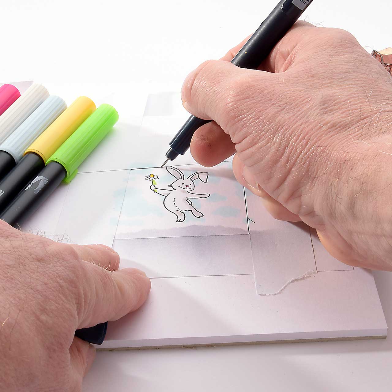 Ziehen mit dem Tombow Mono Fineliner eine dünne Linie um die Hintergrundfläche.