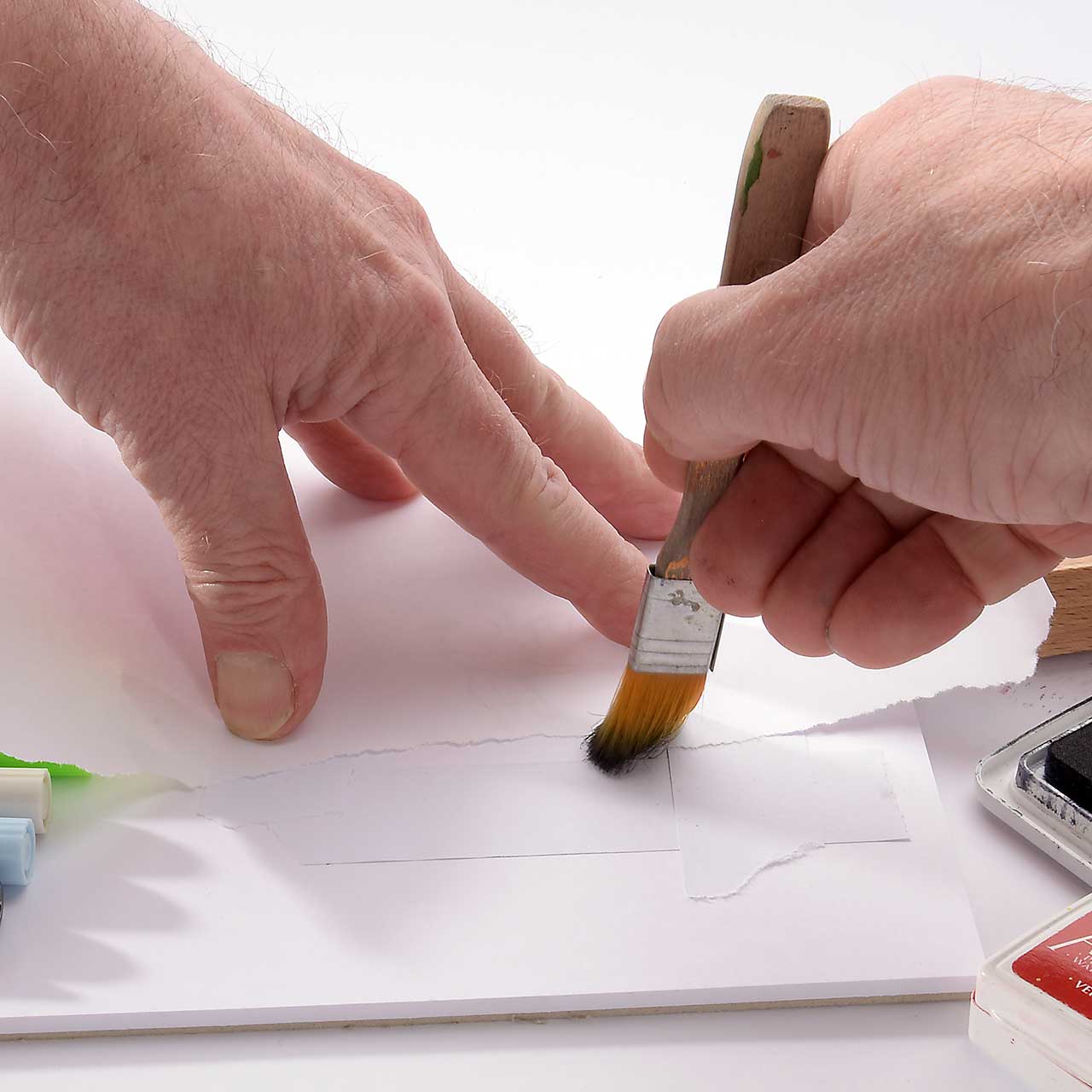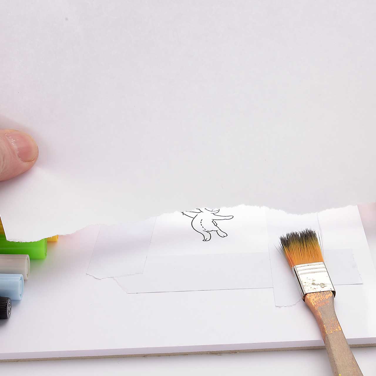 Reisen Sie ein Stück Kopierpapier zurecht und nutzen Sie die gerissene Kante und einen Boden anzudeuten.