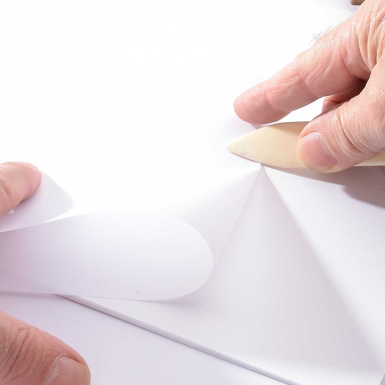 Schneiden Sie ein Blatt Amadeo Transparentpapier auf 14 x 29,7 cm zu und falten Sie es in der Mitte.