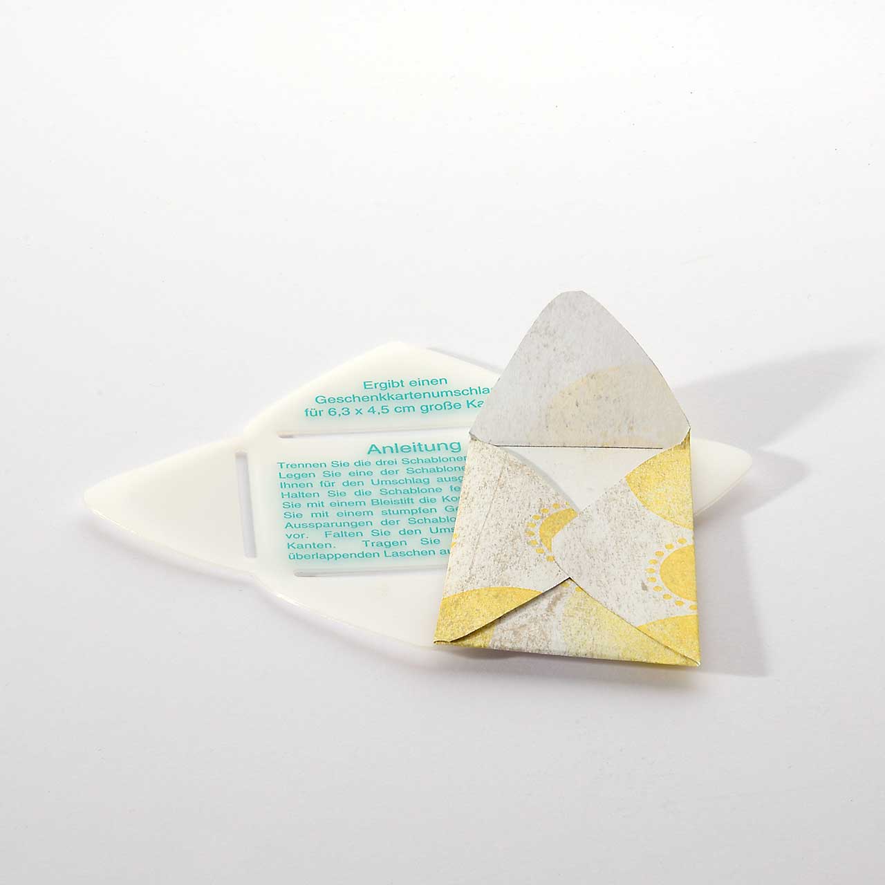 Zum Gestalten eines kleinen Umschlags. Zum Beispiel um kleine Taschen für Geldgeschenke auf Karten zukleben.