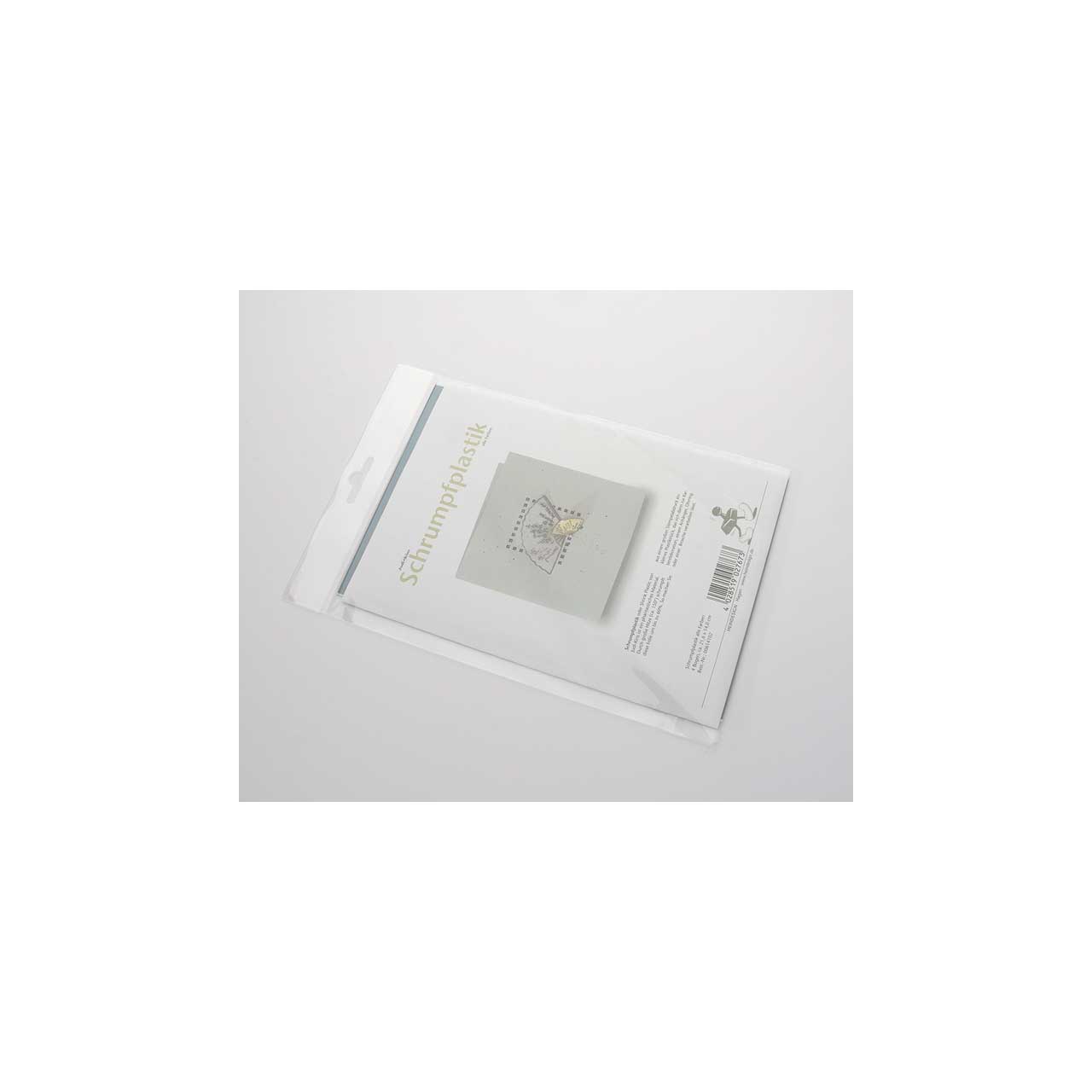 Schrumpfplastik oder Shrink Plastic ist ein phantastisches Material. Durch große Hitze schrumpft diese Folie um bis zu 60%. So macht man aus einem großen Stempelabdruck ein kleines Plastikstück, das sich dann zu einem Anhänger, Ohrring oder einer Brosche verarbeiten läßt.