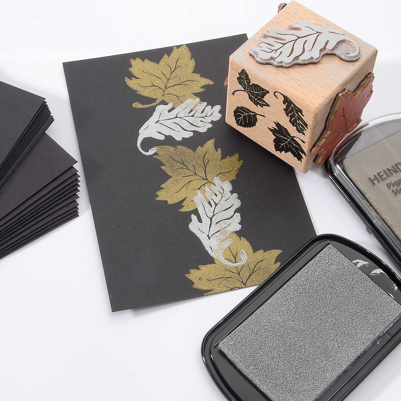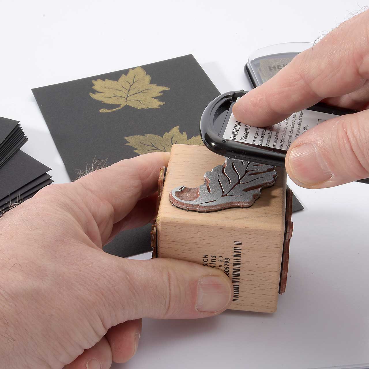 Pigmentstempelkissen decken hervorragend auf dunklen Karten, benötigen aber eine relativ lange Trockenzeit.
