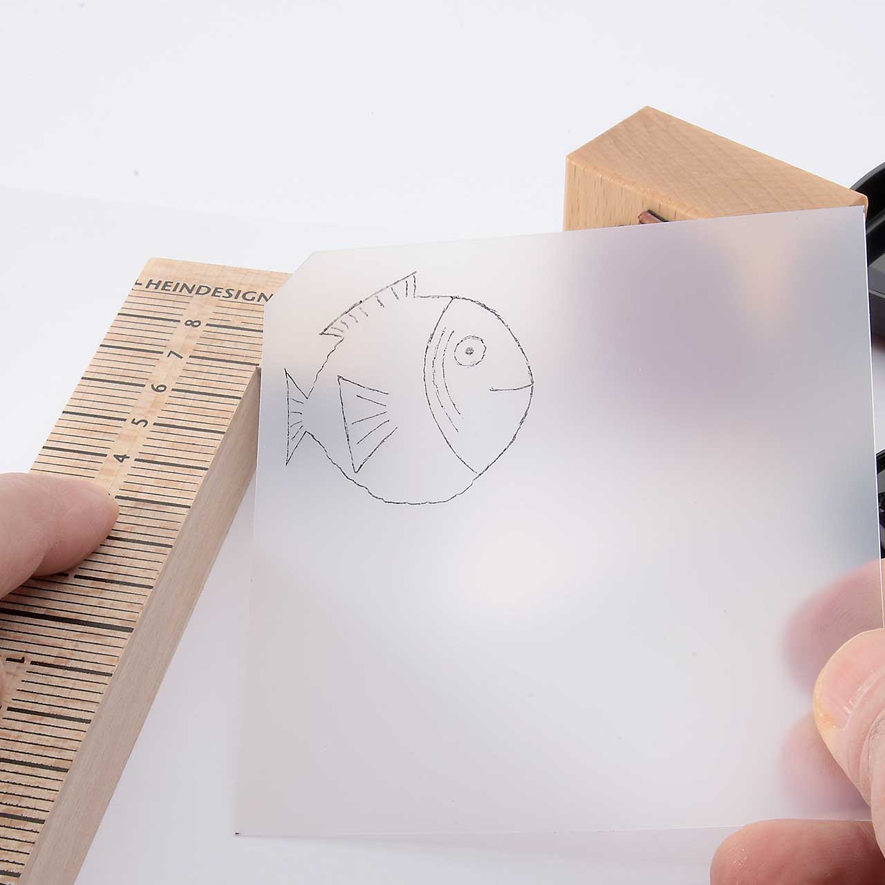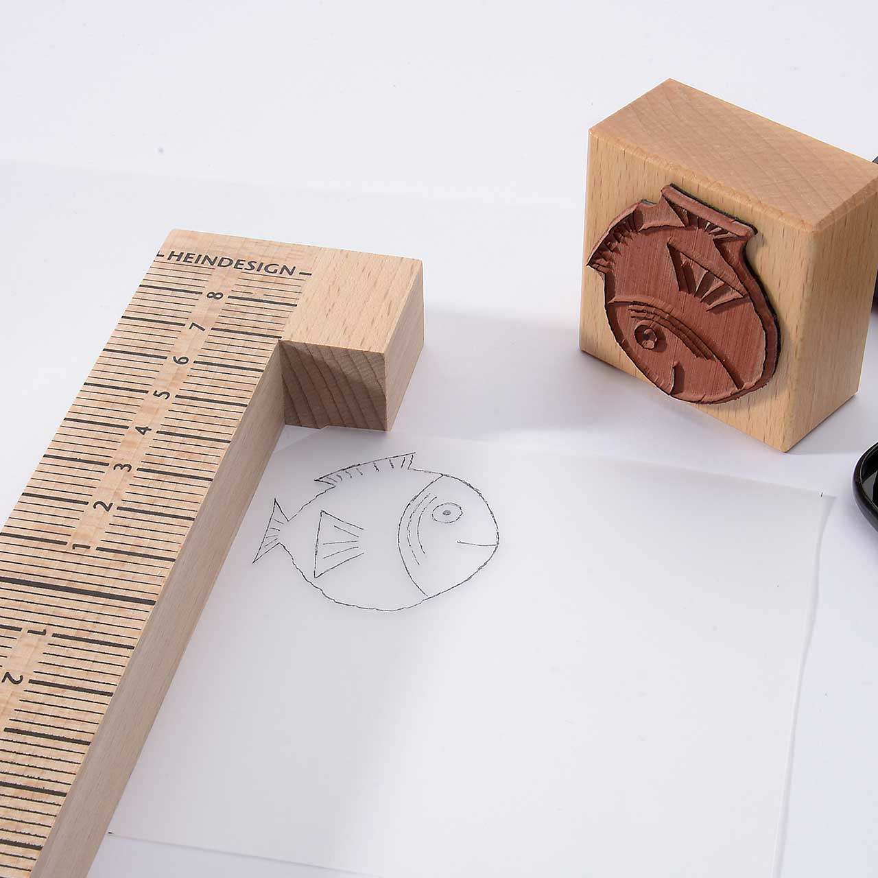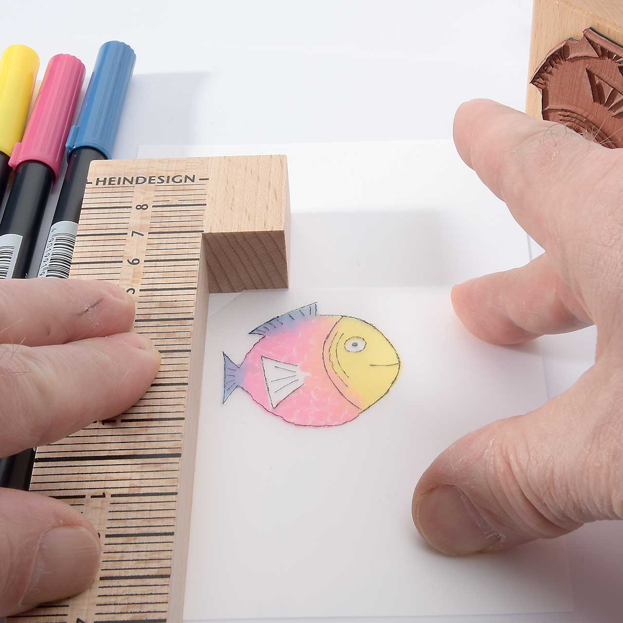 Der Kugelfisch Stempel hat zwei Seiten. Einmal die Fläche und ein mal die Kontur. Die fast genau aufeinander passen.