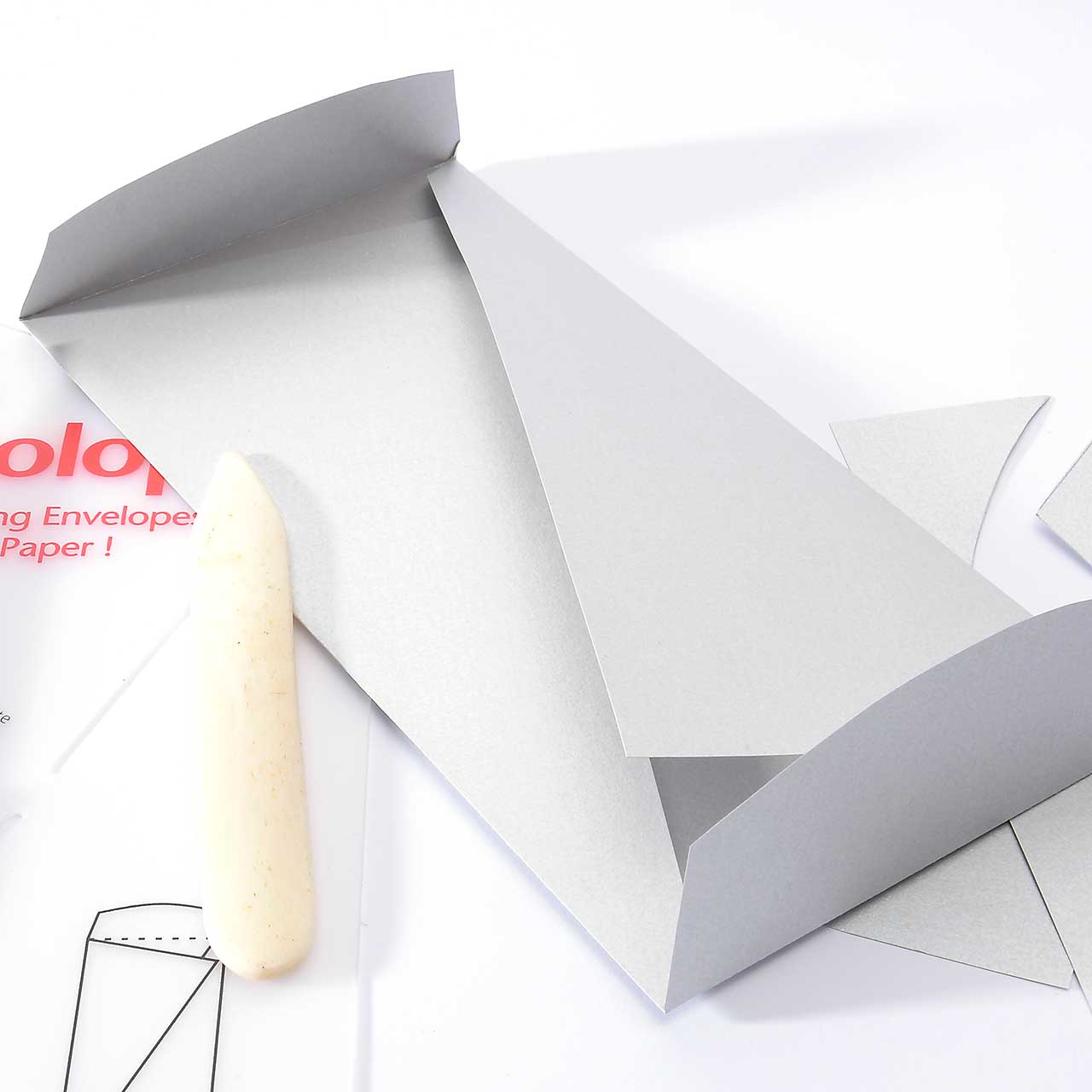 Aus Geschenkpapier, Landkarten, Kalenderblättern, Zeitschriften, handgemachtem Papier, etc. werden im Handumdrehen ganz individuellen Briefumschläge.