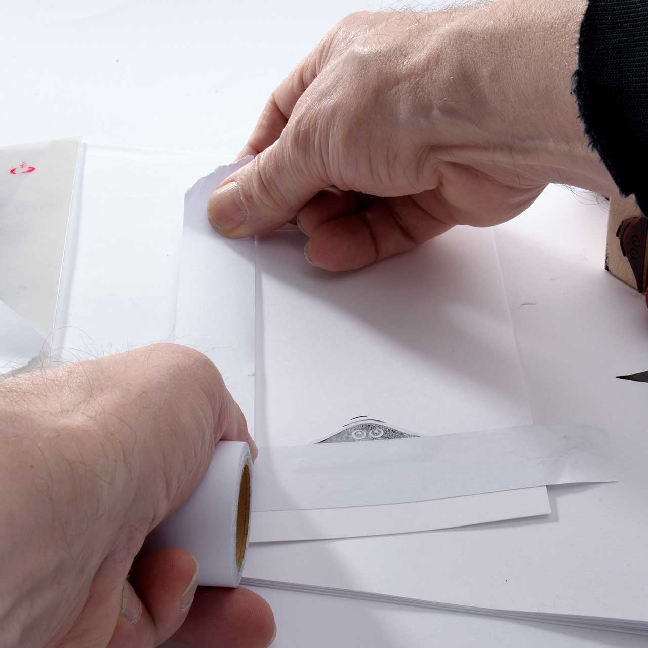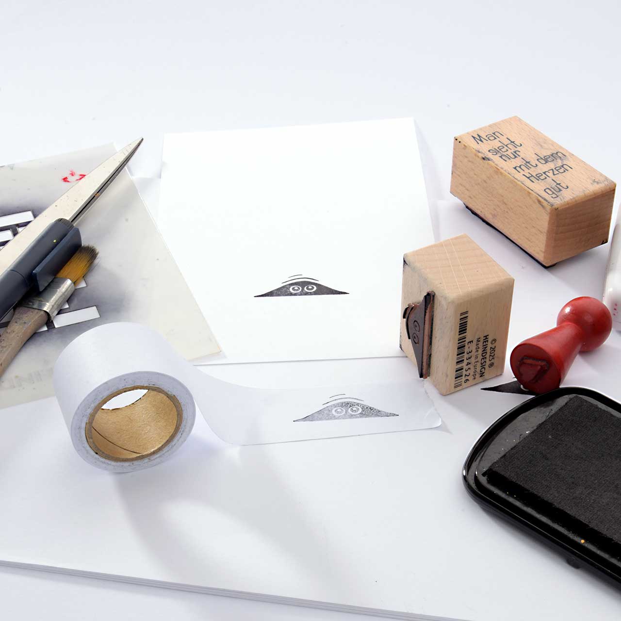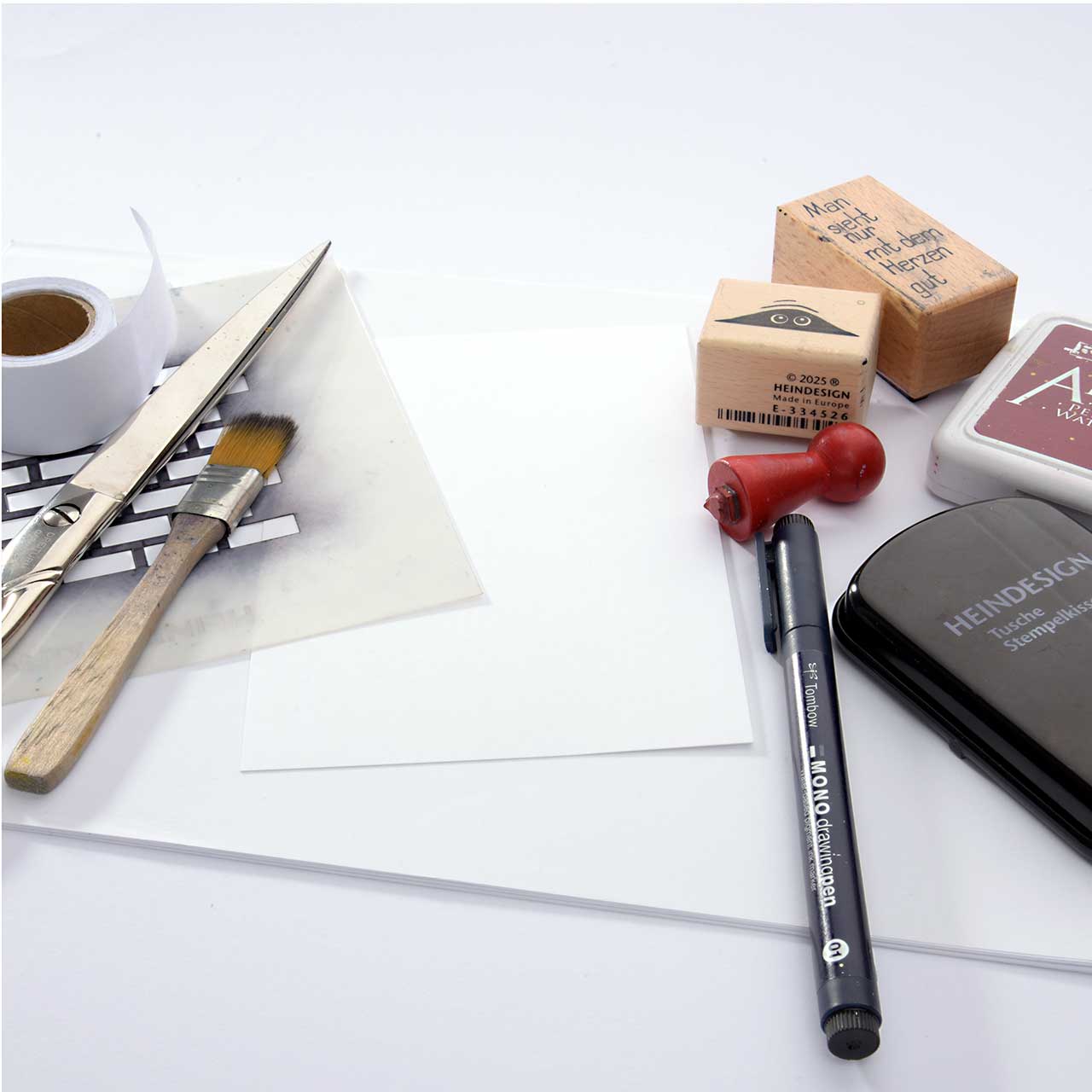 Ziehen Sie mit dem Tombow Fineliner eine dünne Linie um Ihr Motiv. Die aufgeklebten Papierstreifen dienen dabei als (Hilfs)Lineal.
