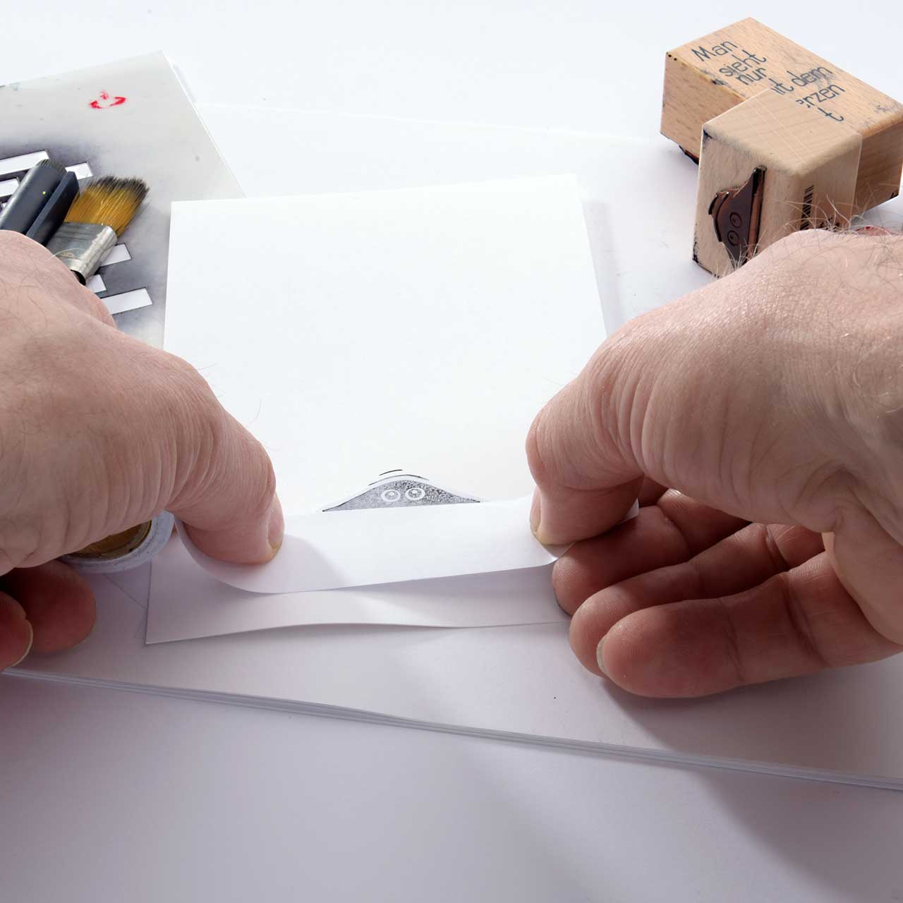 Ziehen Sie alle Papierstreifen von der Karte ab.