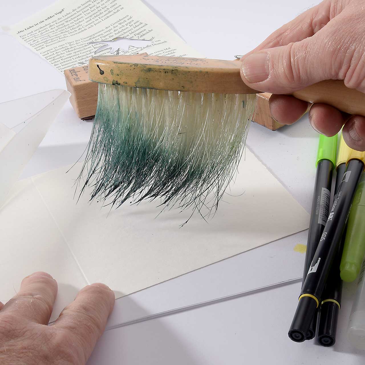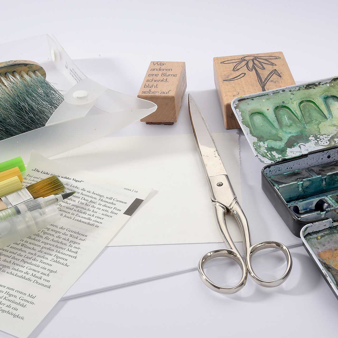 Zusätzlich benötigtes Material oder Werkzeug: Aquarellkasten, Schere, alte Buchseite