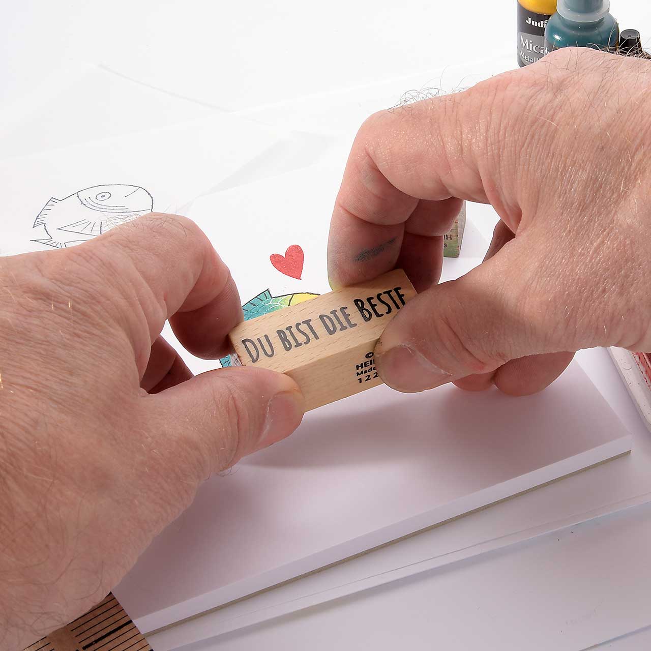 • Die Heindesign Stempel lassen sich mit Wasser reinigen, sollten aber schnell abgetrocknet werden.