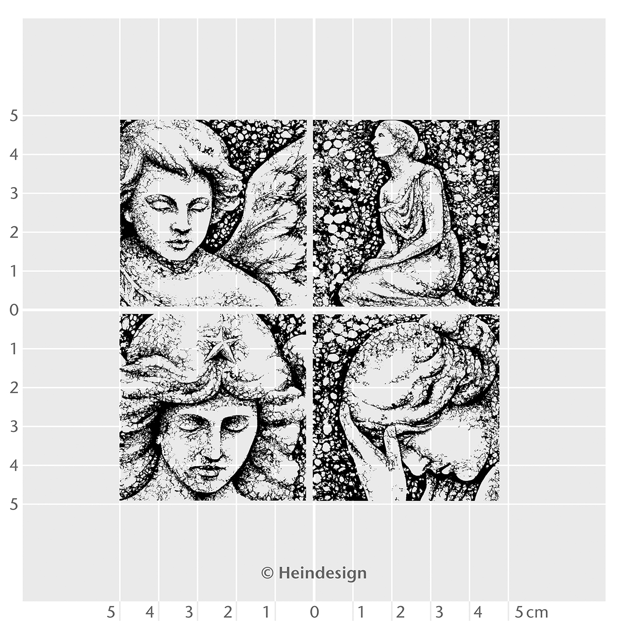 4 Stempel teilen sich einen Handgriff - Größe ca. 55 x 55 mm