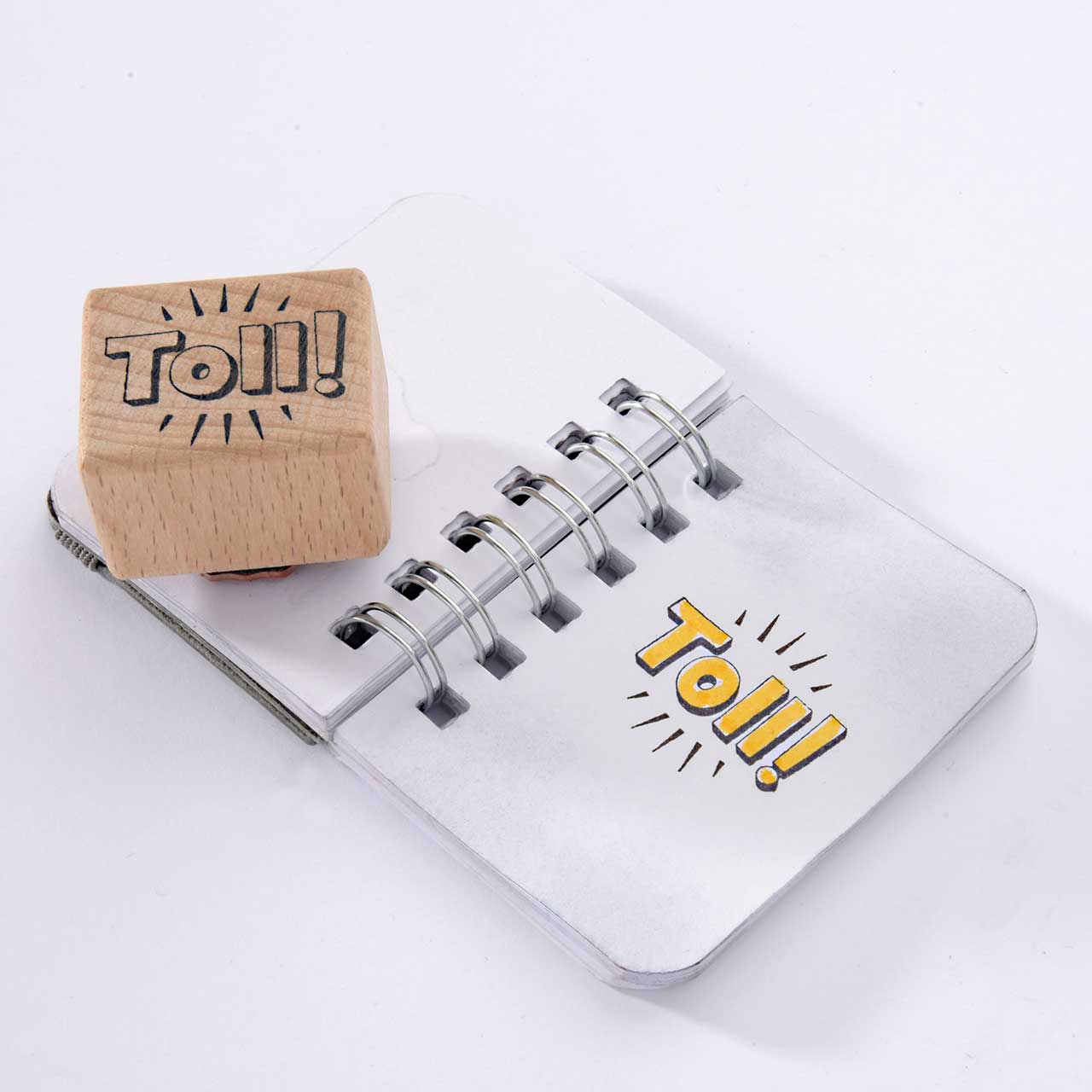 Für eine gute Handhabung der Stempel wird das Stempelgummi mit einer dämpfenden Schicht auf einen Griff geklebt. Dieser Griff besteht aus einem lackierten Buchenholzklötzchen, das das Motiv in original Größe zeigt.