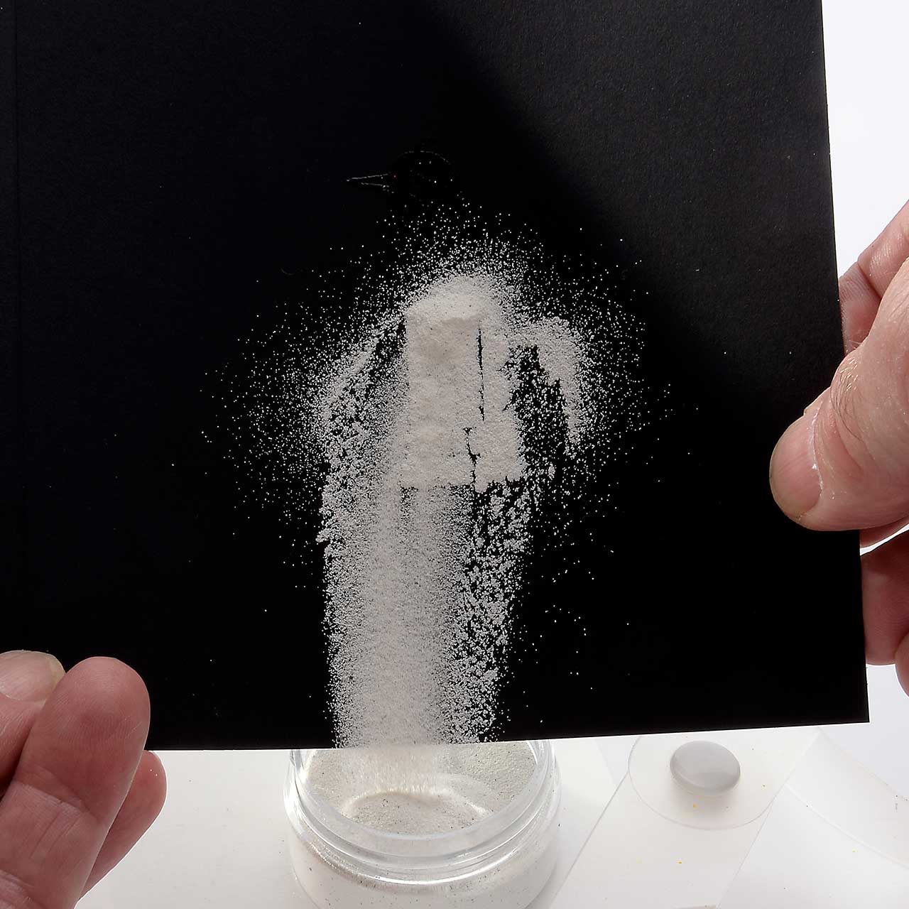 (Damit keine schwarzen Sternenstaubkrümel in das Döschen mit dem weißen Sternenstaub kommt, reinigen Sie das Snappy Tray vor dem nächsten Abdruck gründlich.)