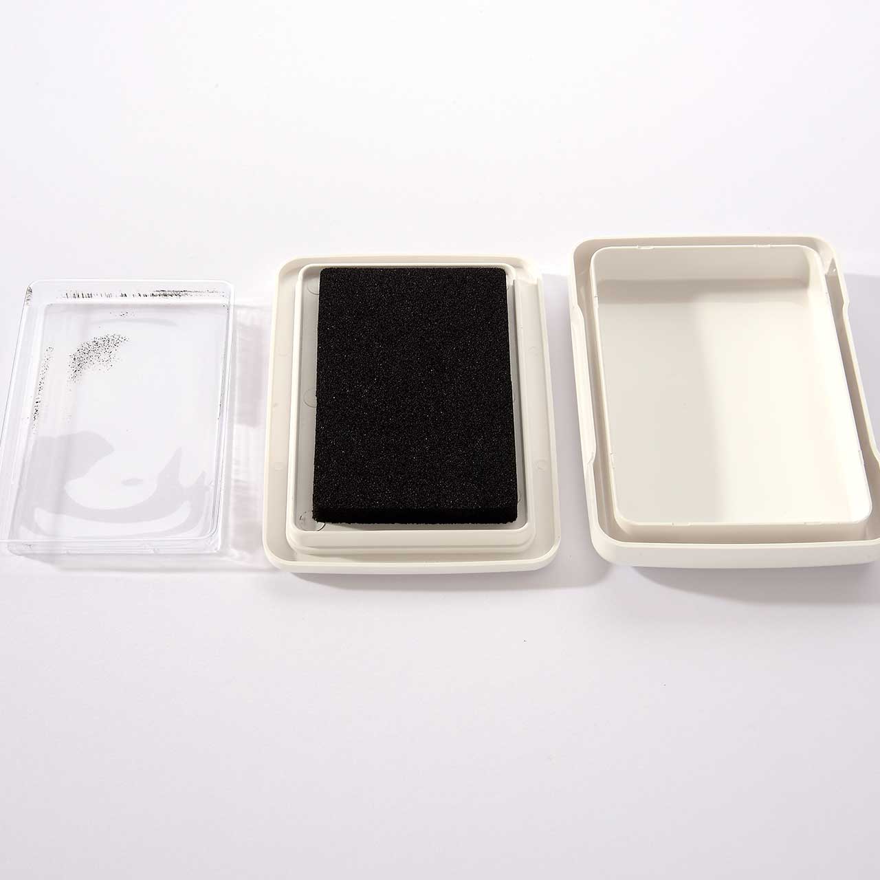 Stempelkissen mit langsam trocknener Pigmentfarbe. Die Stempelkissenfläche ist erhaben und erlaubt auch das Einfärben sehr großer Stempel.