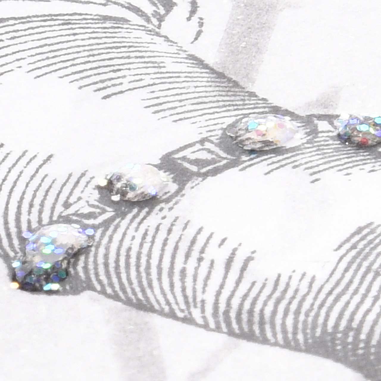 Geben Sie jeweils einen dicken Tropfen Diamond Glaze auf die „Edelsteine“ in dem Schreibende Hand Motiv und streuen Sie ein wenig Sternenglanz Prisma Glitter. Lassen Sie die Diamond Glaze Tropfen etwa 30 Minuten trocknen.