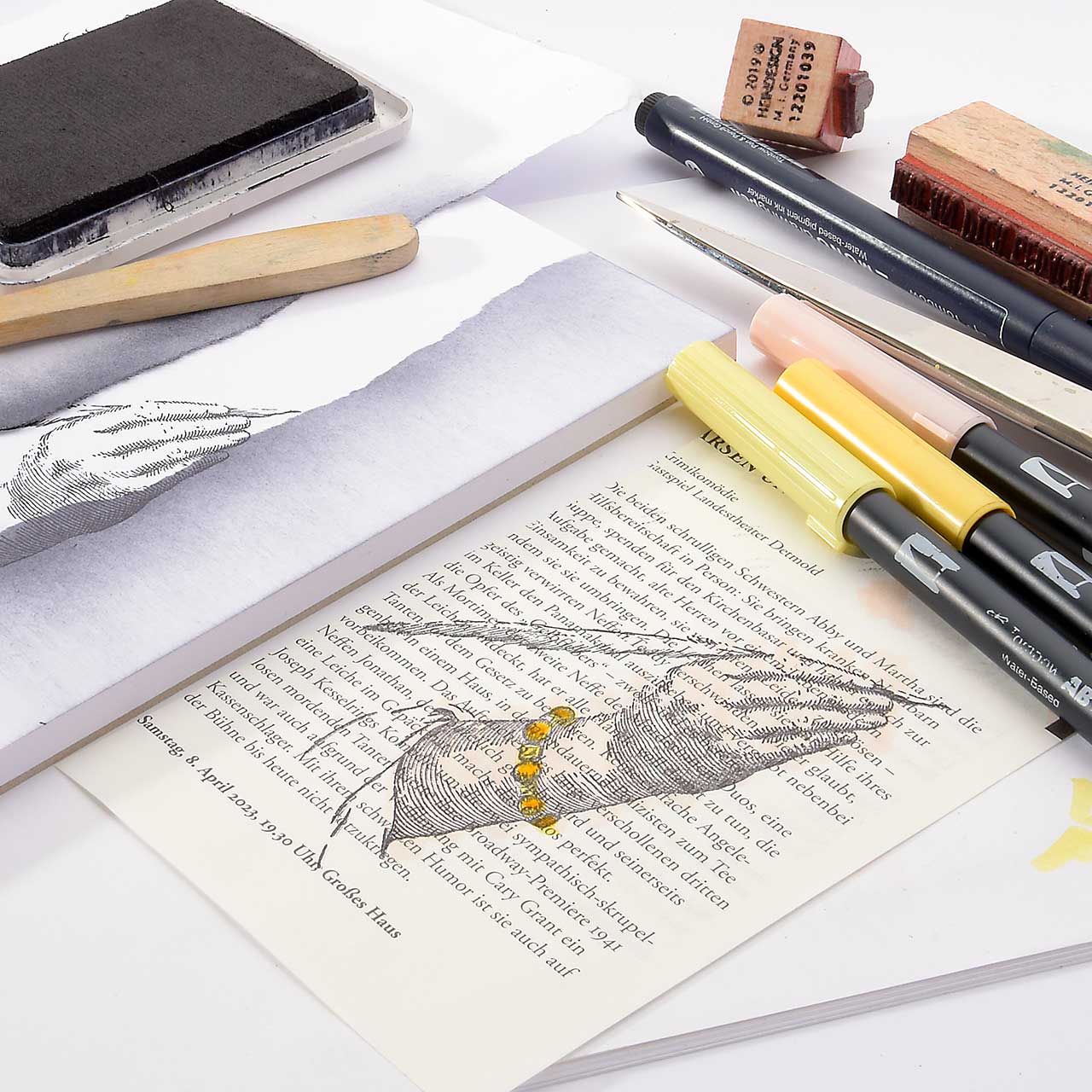 Zusätzlich benötigtes Material oder Werkzeug: Buchseite, Kopierpapier