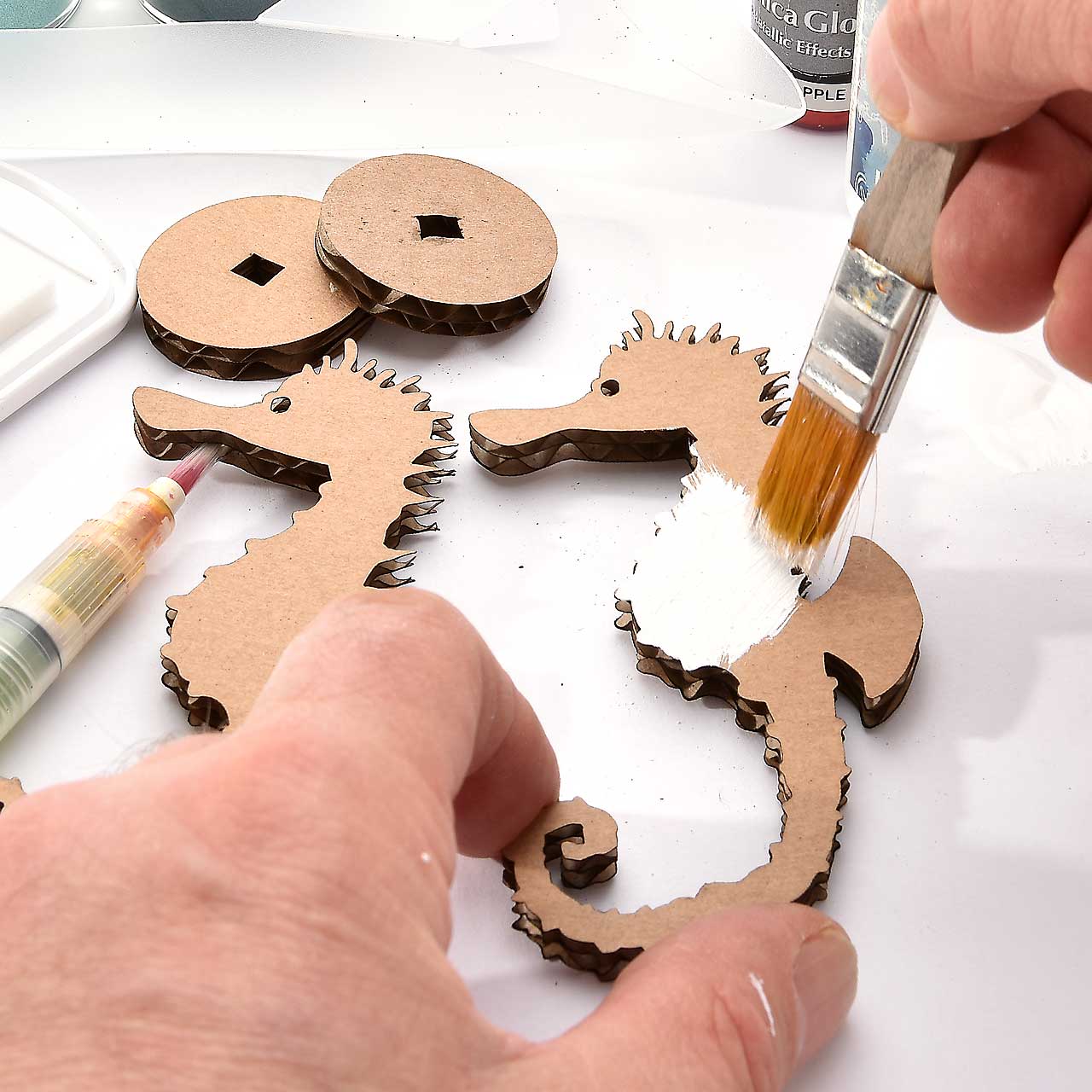 Hinweis: Für die Massenproduktion ist es einfacher, wenn Sie die Seepferdchen in der Pappe anmalen.