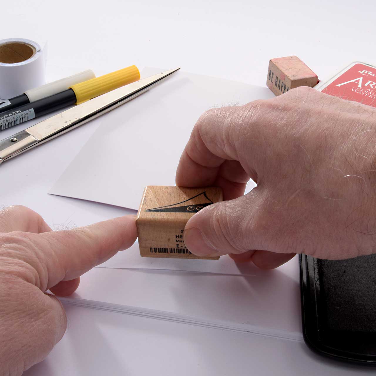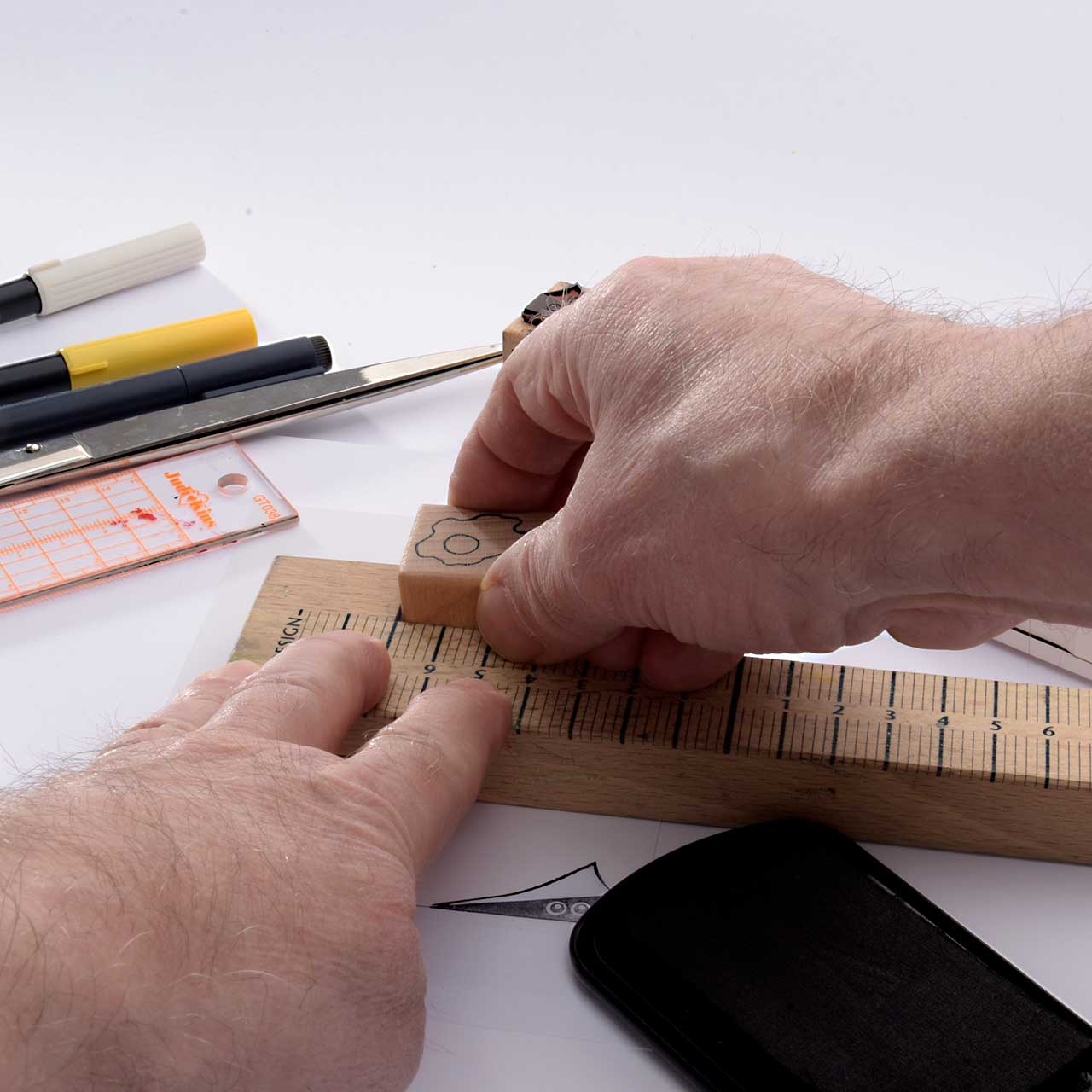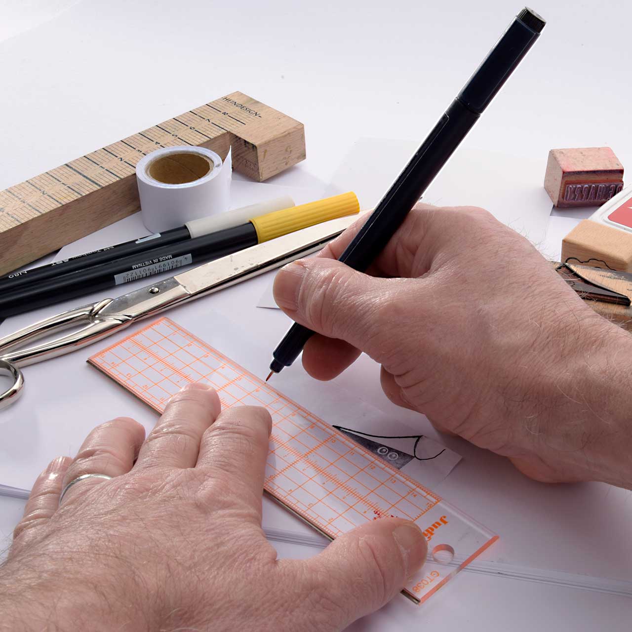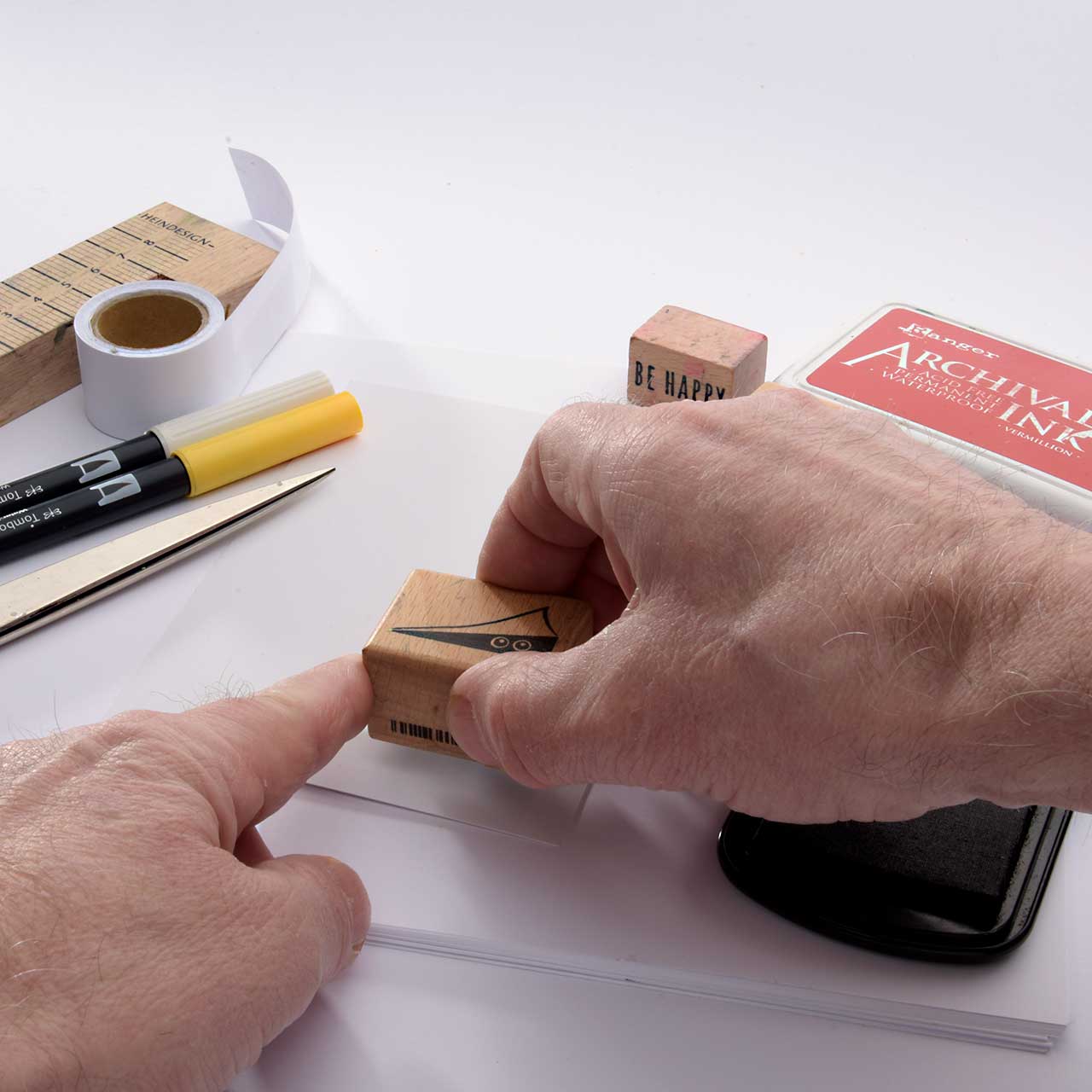 Der Abdruck auf dem Eclipse Papier dient zum Abdecken, darum vervollständigen Sie das Motiv ein wenig. Mit einer Linie an der unteren Kante und einem kleinen Bogen am rechten Ende des Motivs. Schneiden Sie das Motiv entlang der Linie aus.