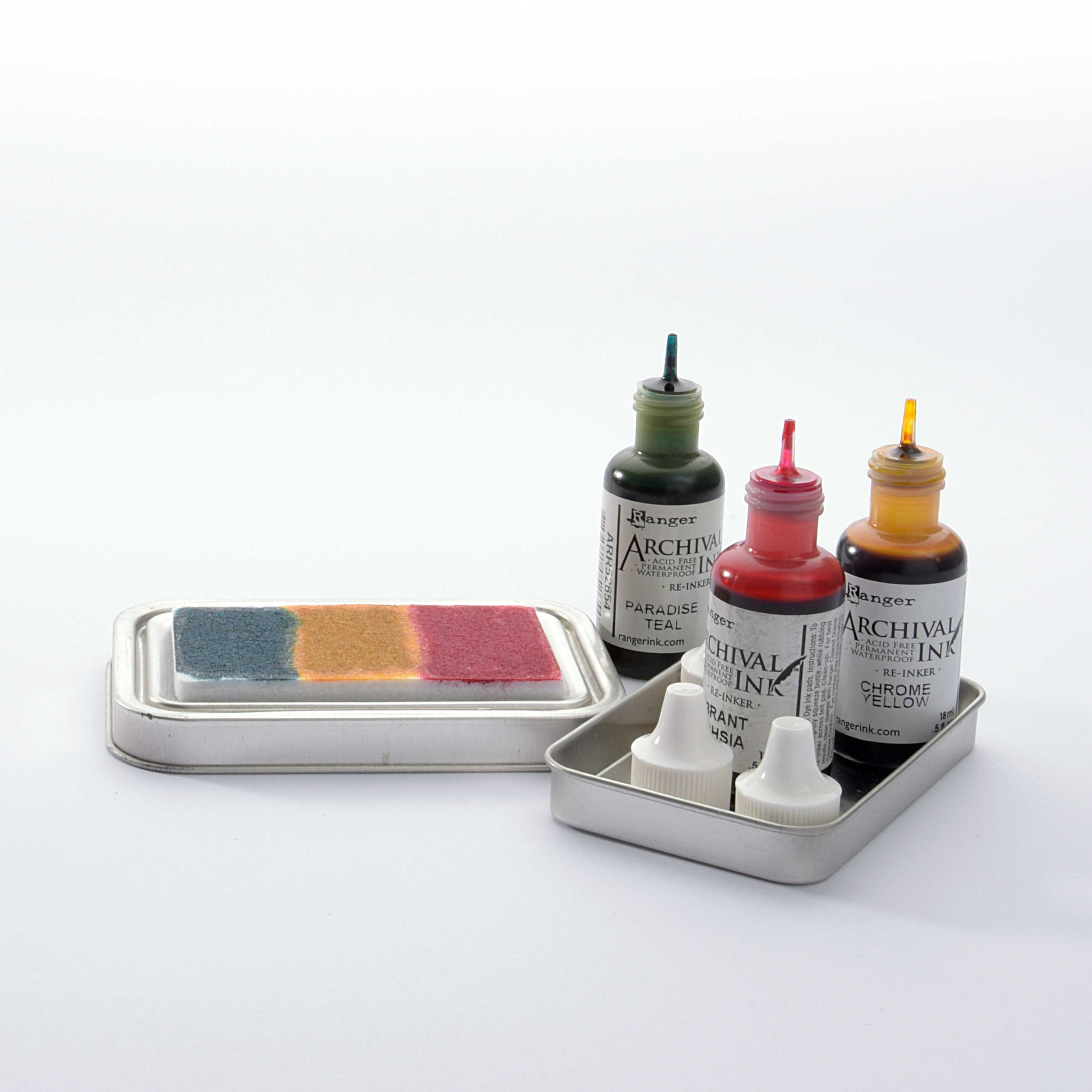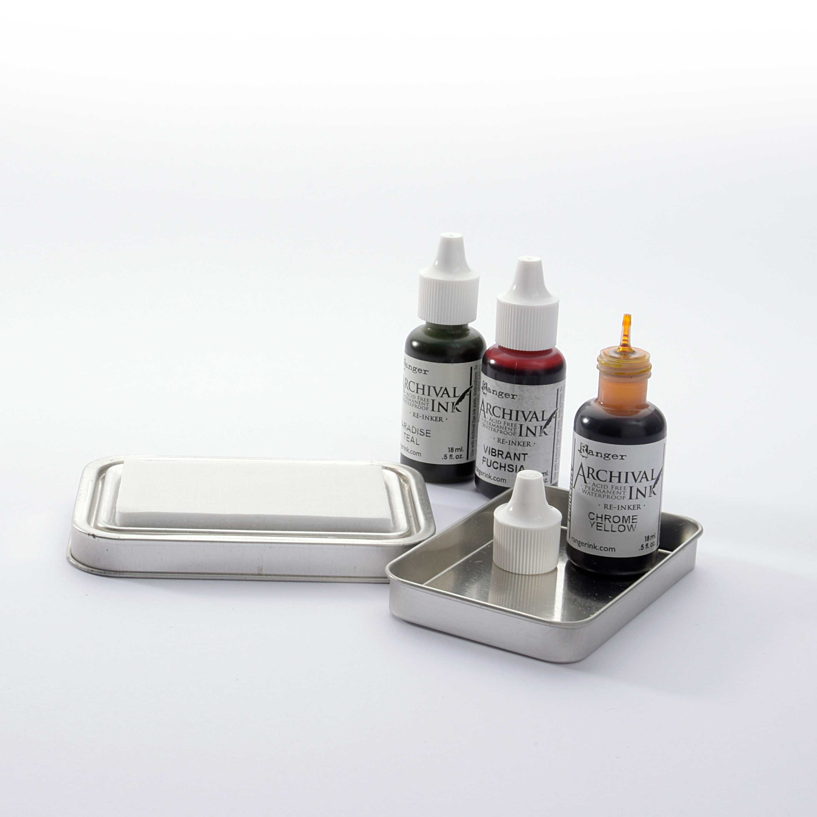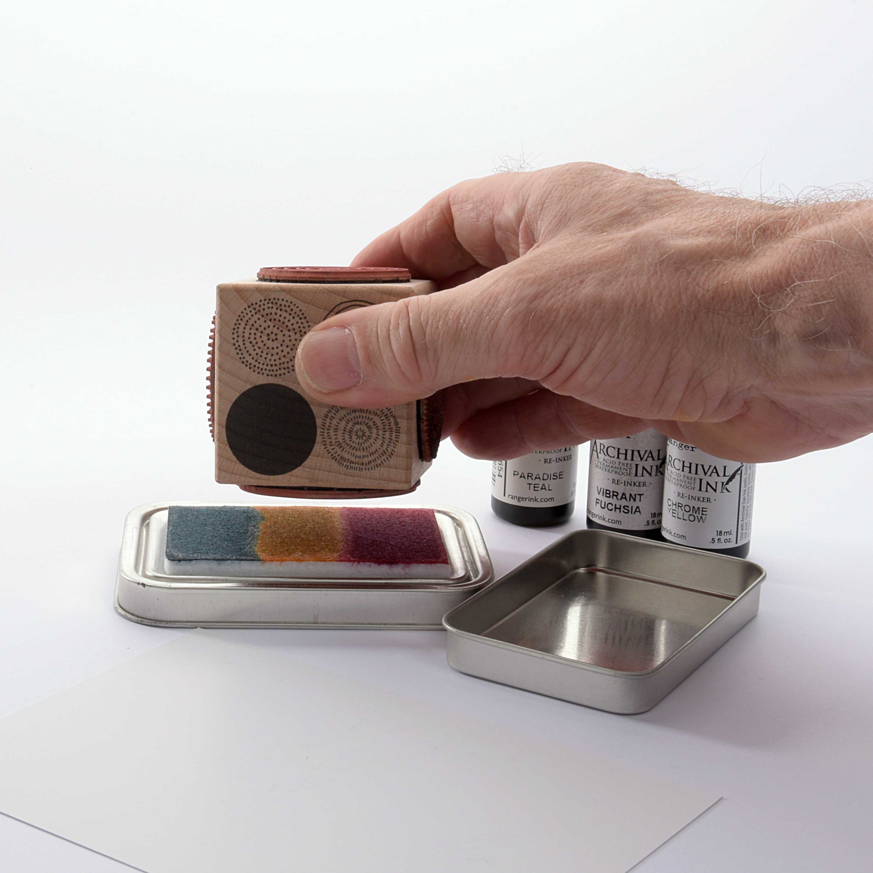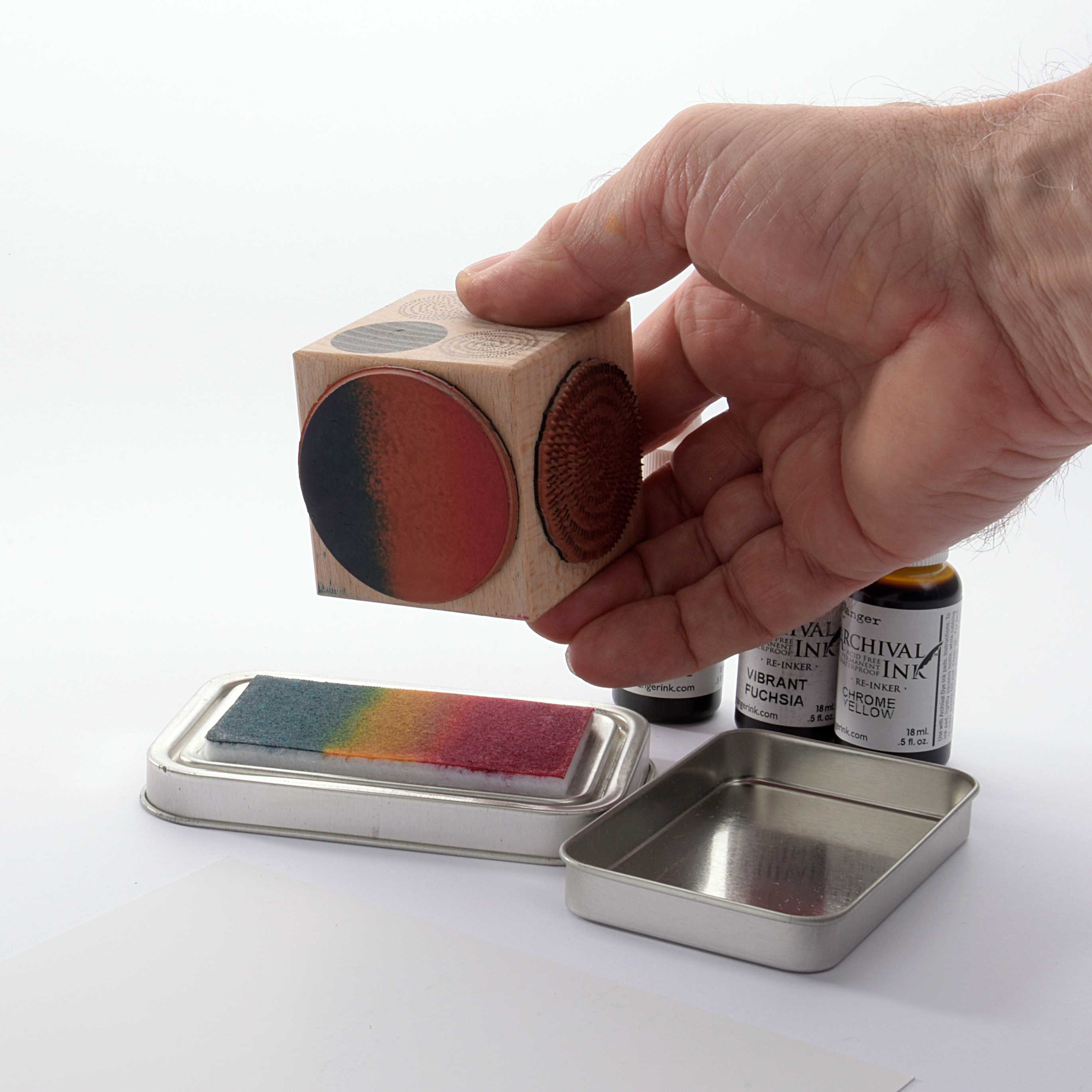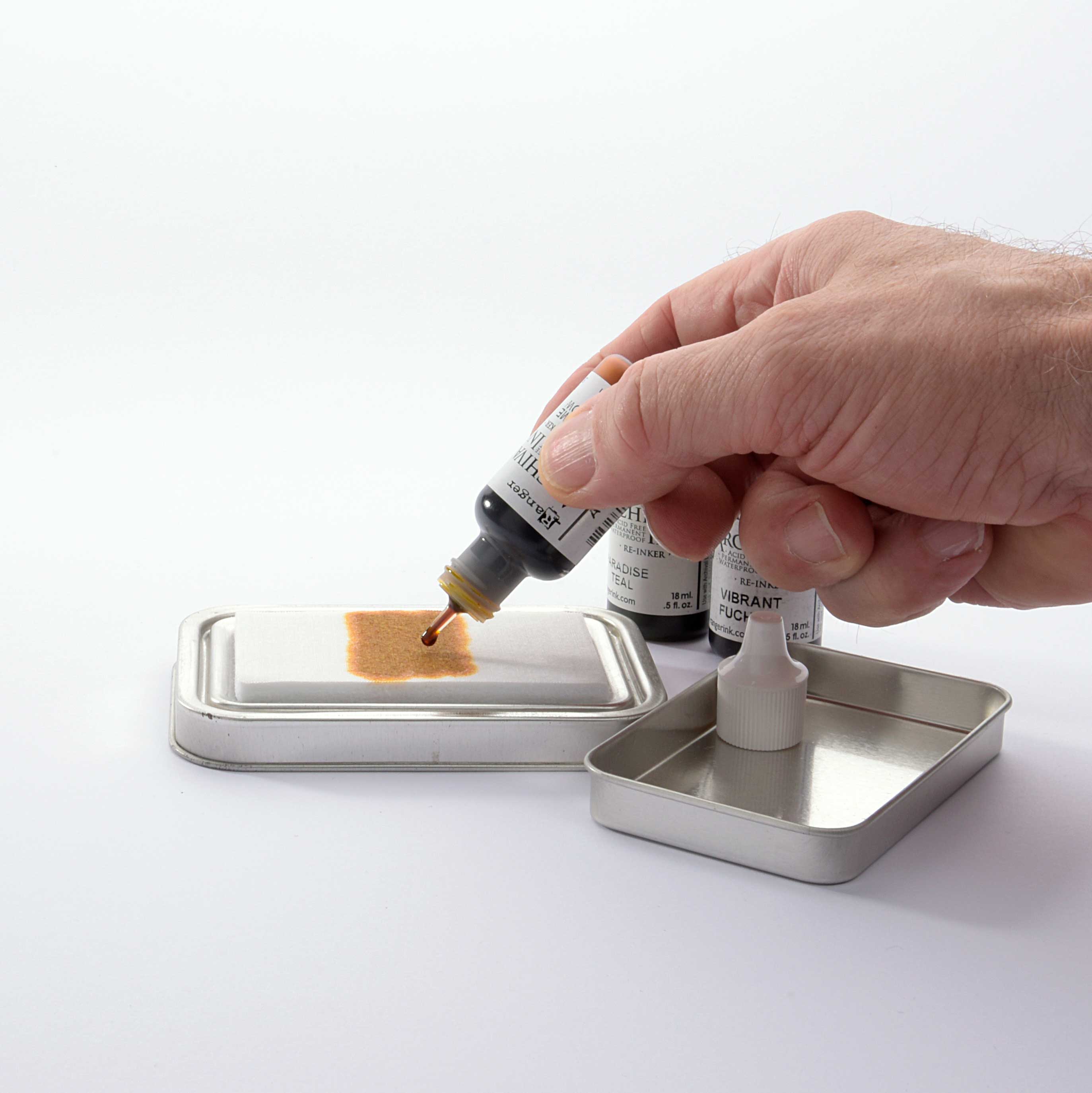 Das Stempelkissen besteht aus einer dicken Filzschicht, die die Stempeltusche aufnimmt. Mit Nachfüllfarbe für Tusche-Stempelkissen können Sie das leere Stempelkissen mit zwei, drei oder mehr Farben füllen.