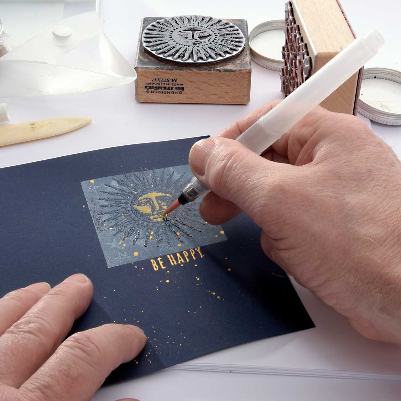 Zusätzlich benötigtes Material oder Werkzeug: goldene Aquarellfarbe