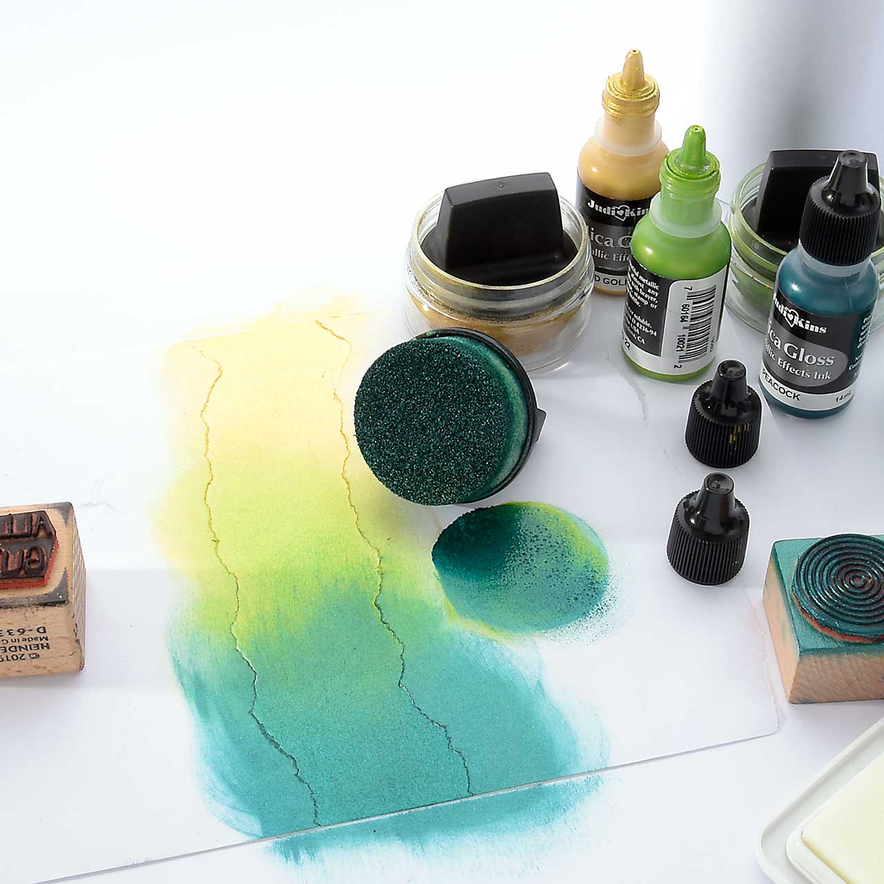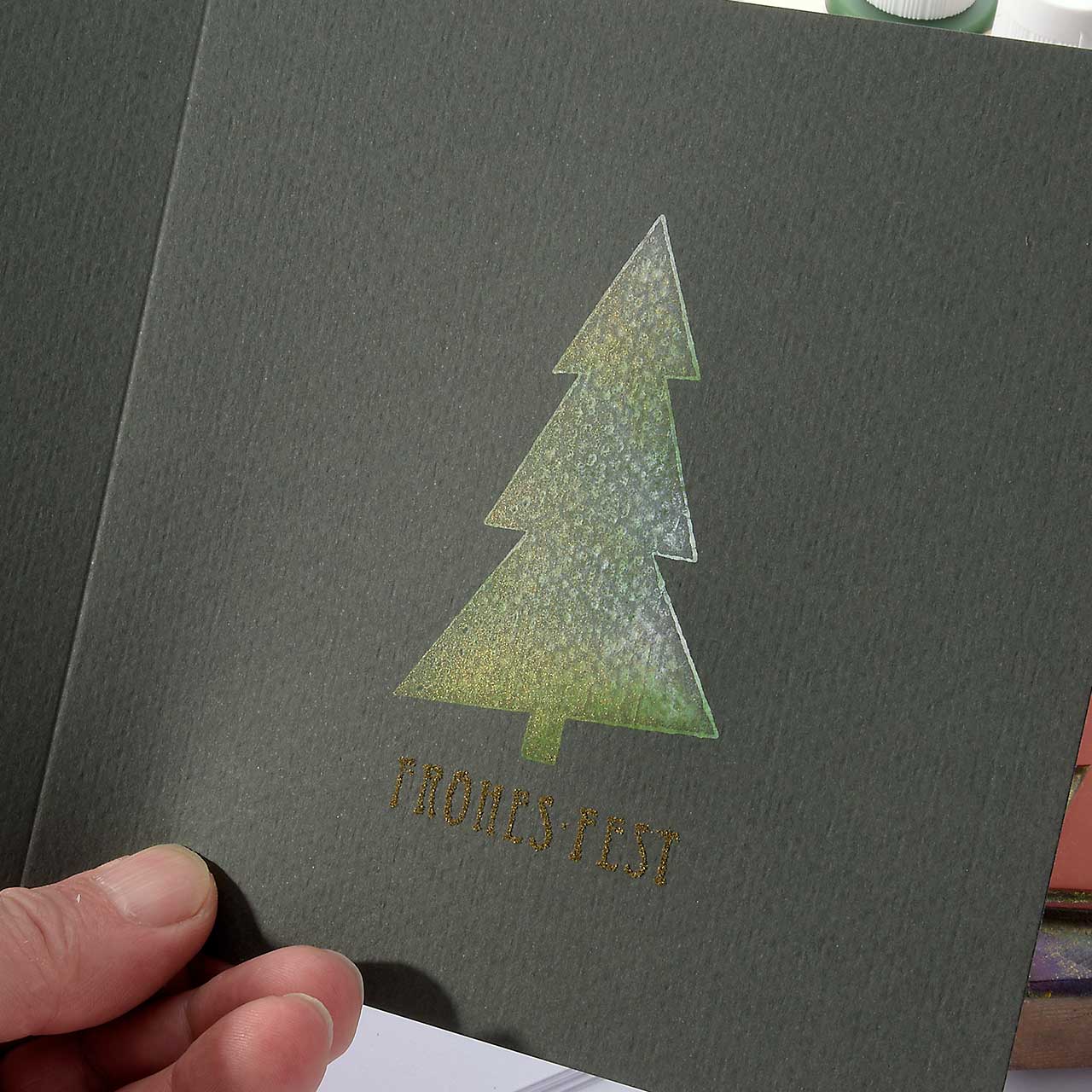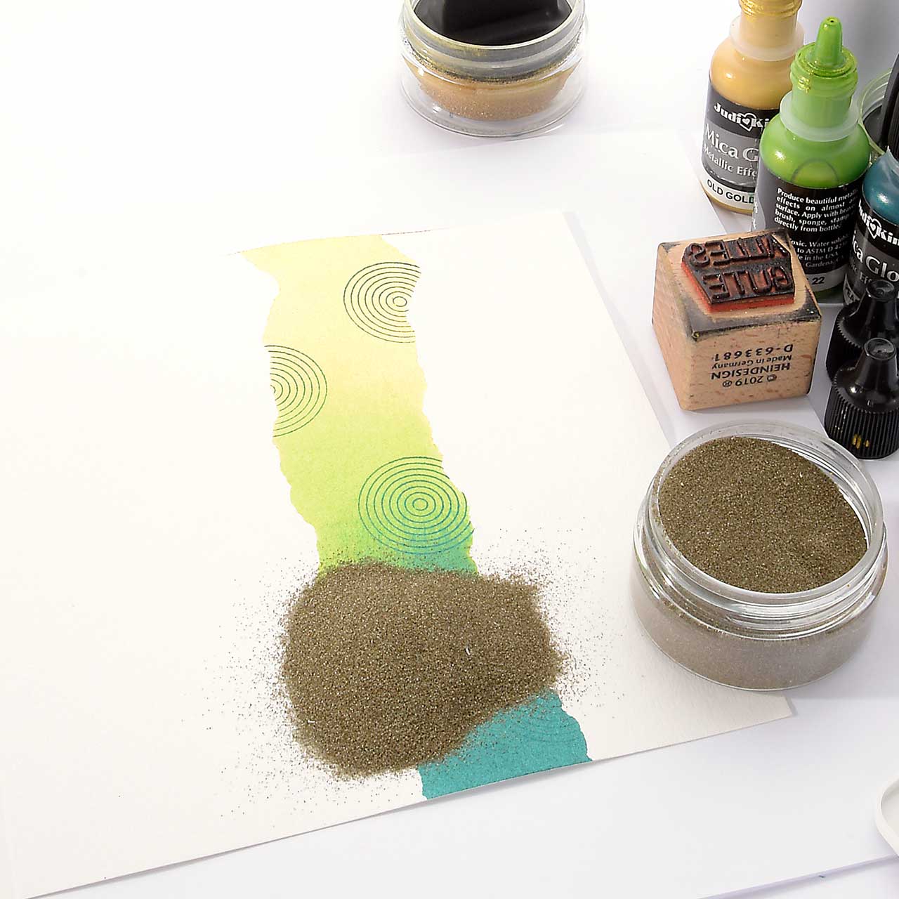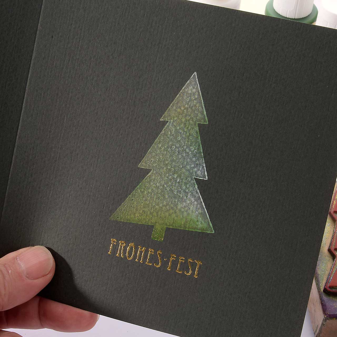 das Stempelabdrucken einen lackartigen Reliefcharakter verleiht. Dieser Effekt macht das Embossing zur zentralen Stempel-Technik.