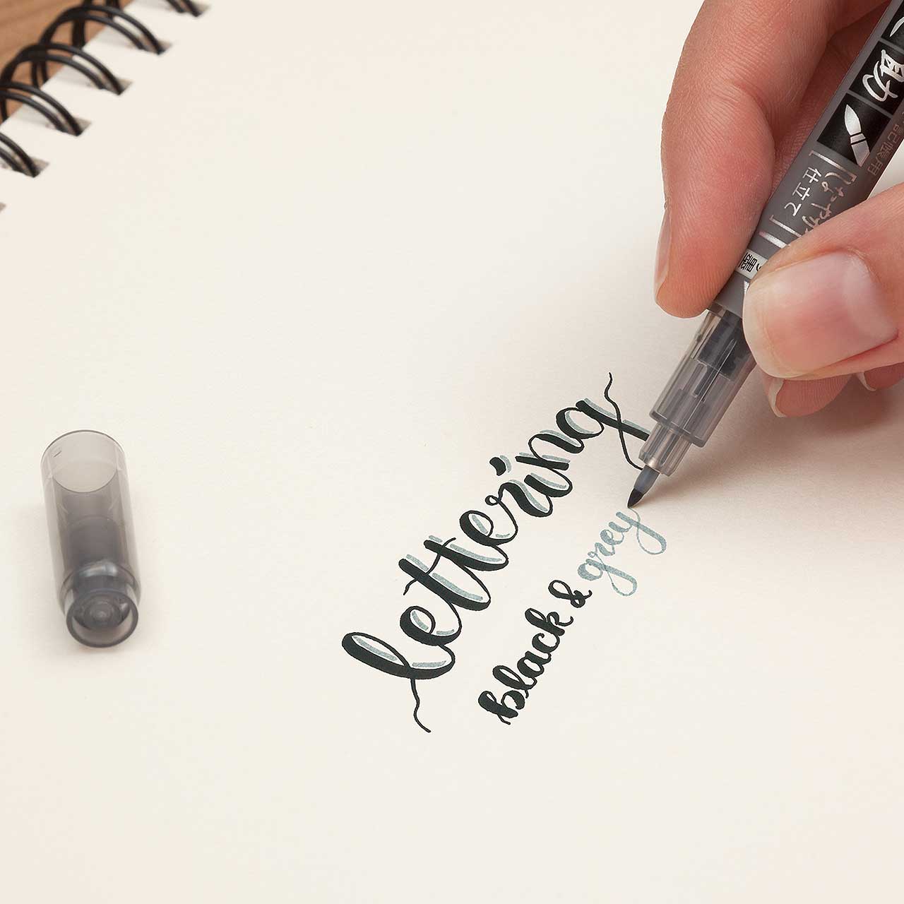 Produktinformationen "Tombow Fudenosuke Pen Twin Grau/Schwarz Soft Tip"