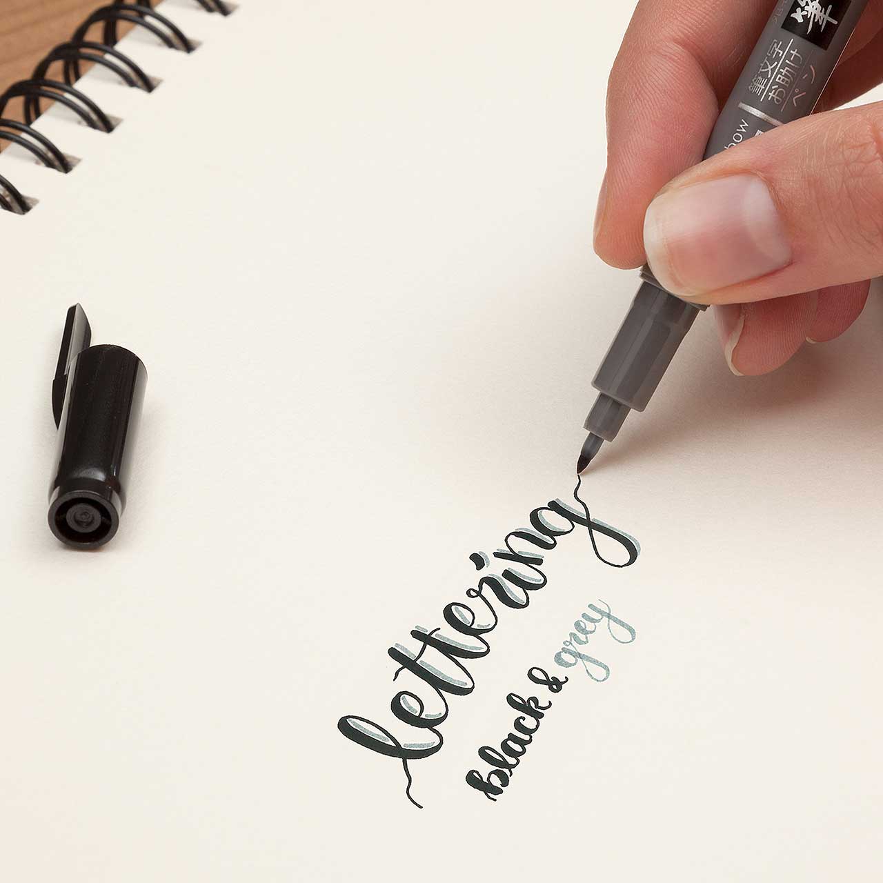 Der Brush Pen Fudenosuke Twin eignet sich mit seinen zwei elastischen Pinselspitzen für Kalligraphie, Skizzen, Sketchnotes, Zentangle, Hand Lettering u.v.m. Die Linienbreite variiert von sehr fein bis dick durch ausgeübten Druck auf die Spitzen Mit zwei weichen Spitzen (Härtegrad 2) besonders für große Schriften geeignet. Die Tinte ist wasserbasiert mit Farbpigmenten und geruchslos. Schreibfarben: schwarz und grau.