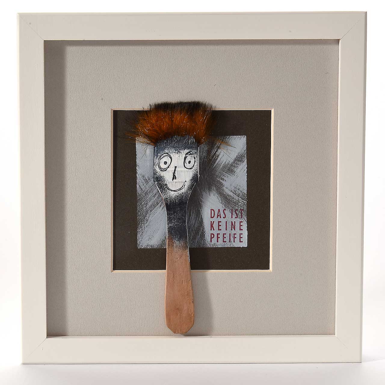 Stempeln Sie das „Das ist keine Pfeife“-Textmotiv in die rechte untere Ecke des Quadrates.