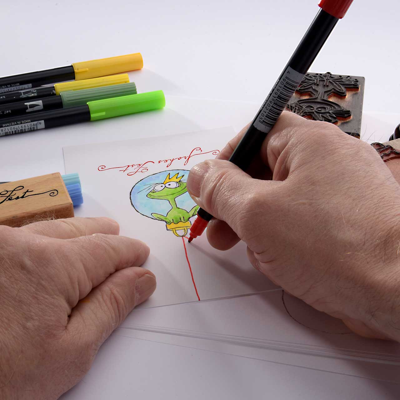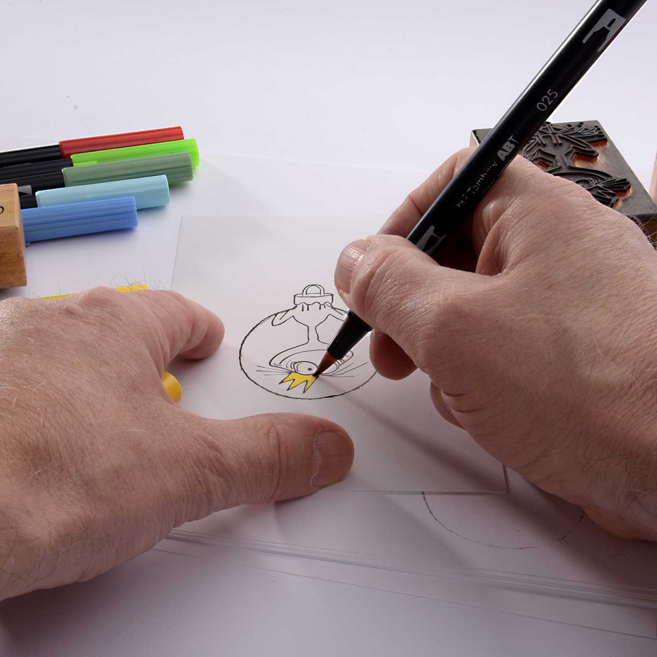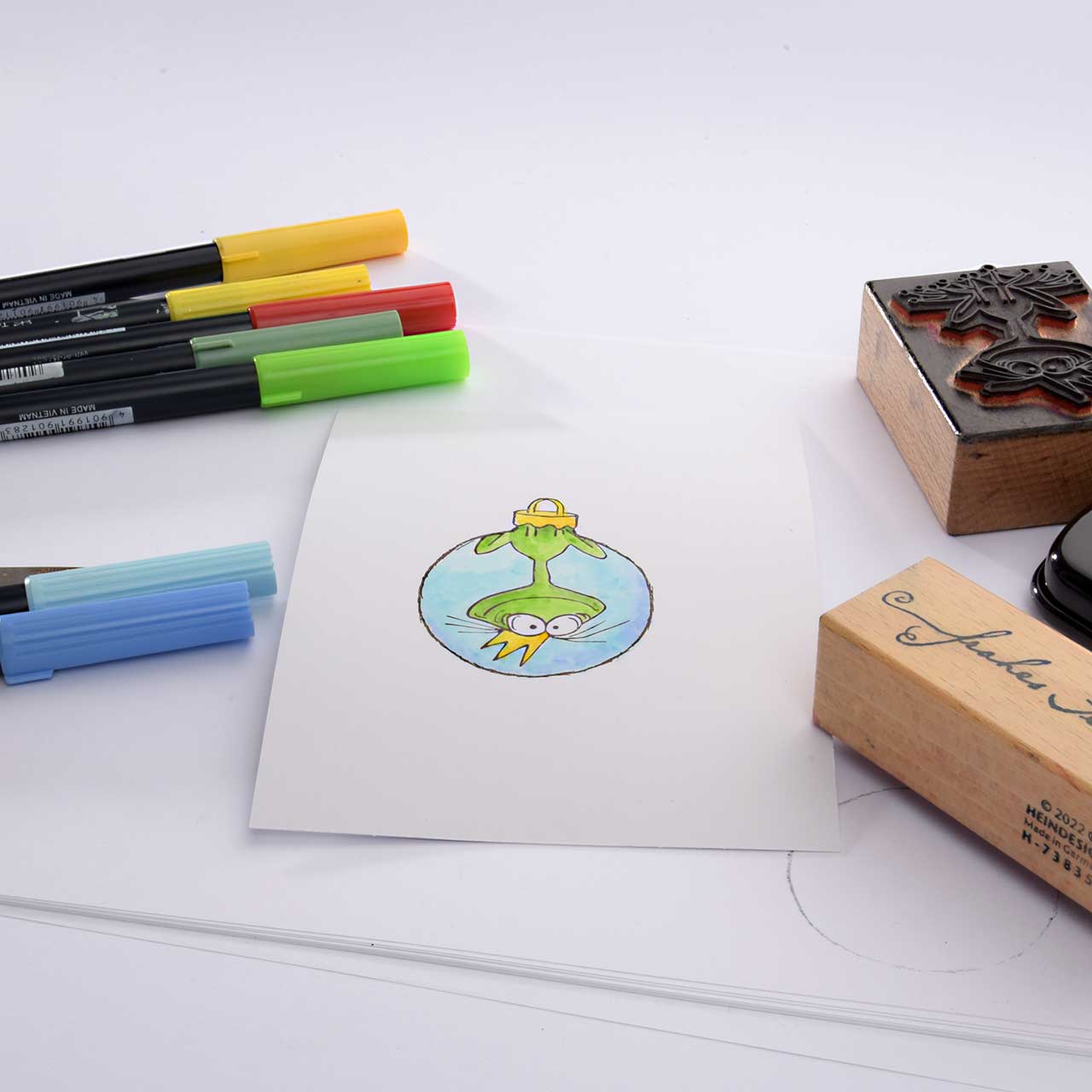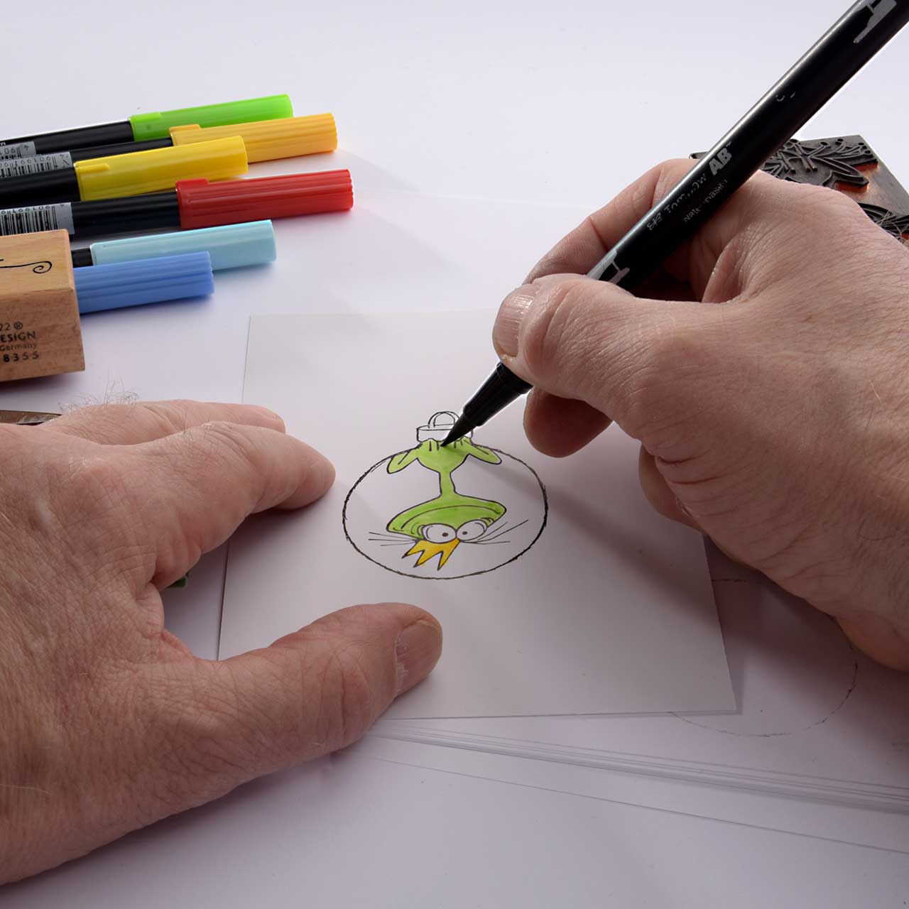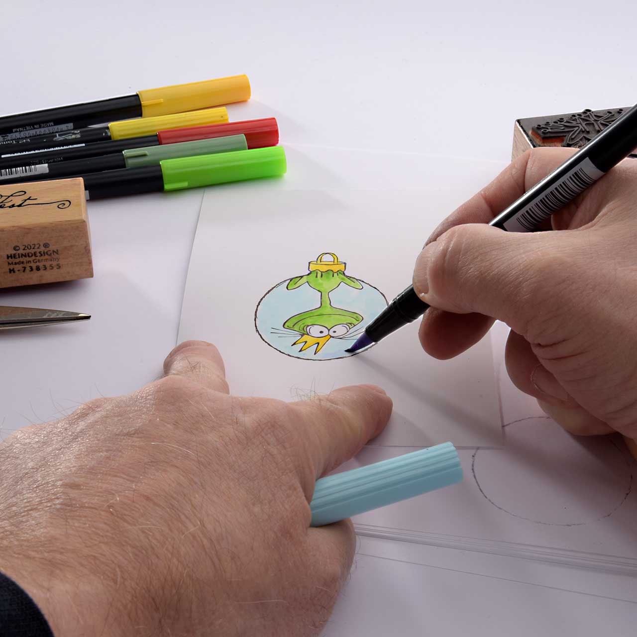 Kolorieren Sie das Motiv mit den Tombow Dual Brushpen Fasserschreibern.