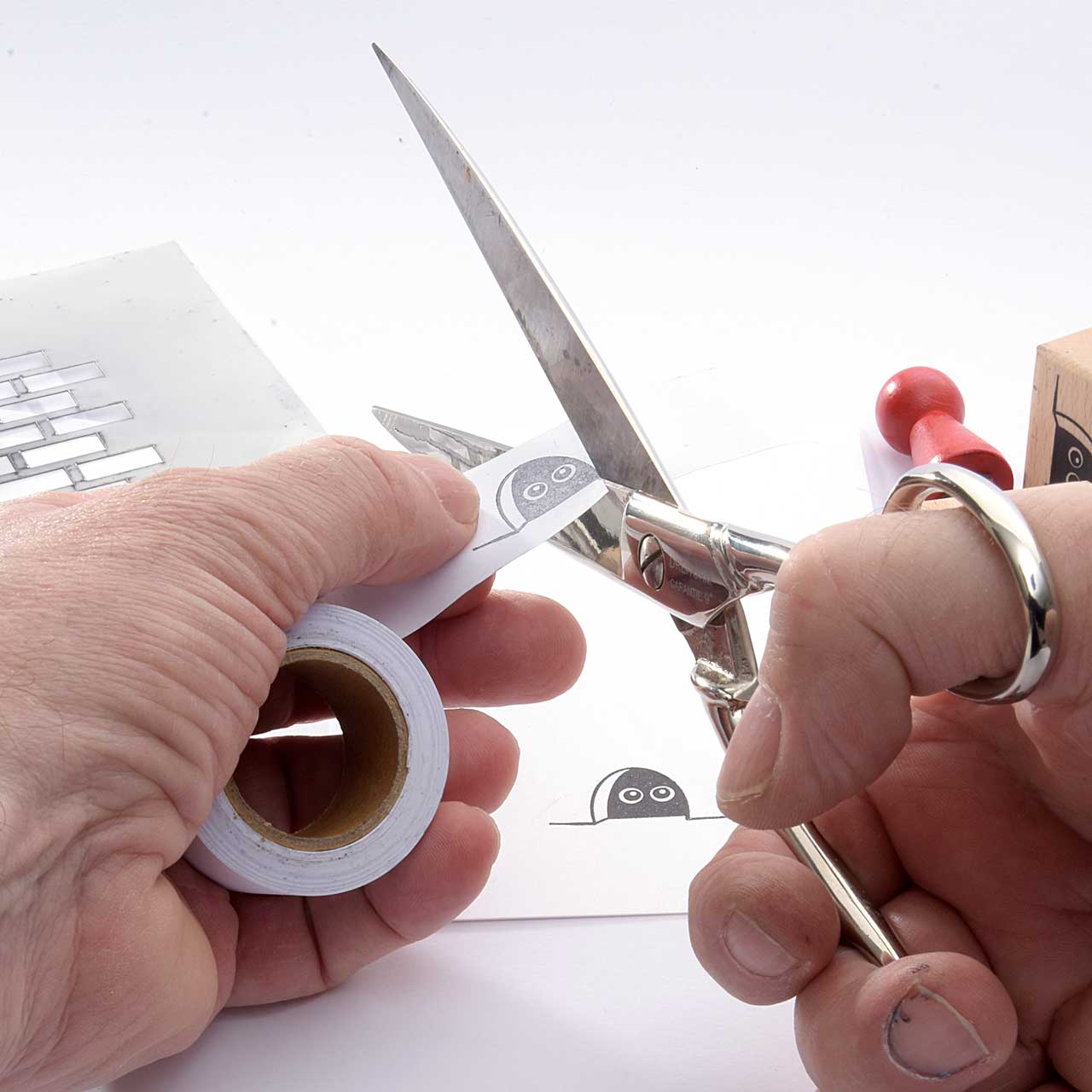Decken Sie mit einem Eclipse Papierstreifen den unteren Teil Ihrer Karte, bis zum Mauseloch Motiv ab.