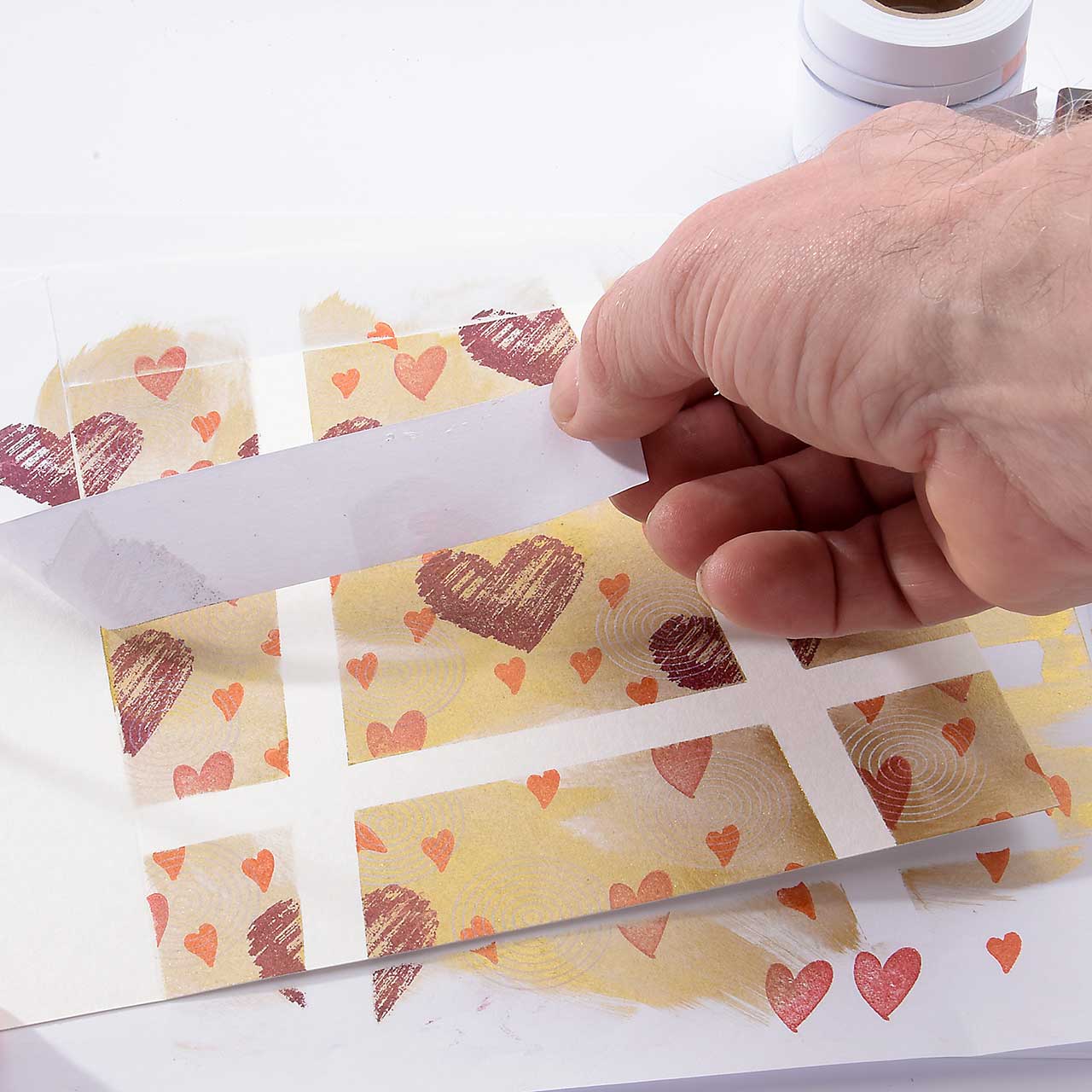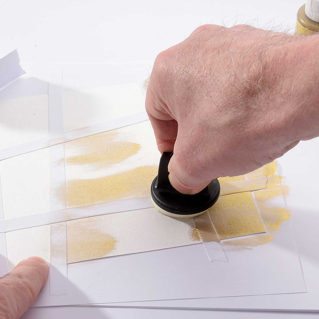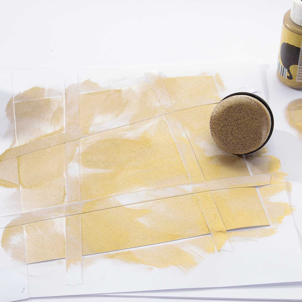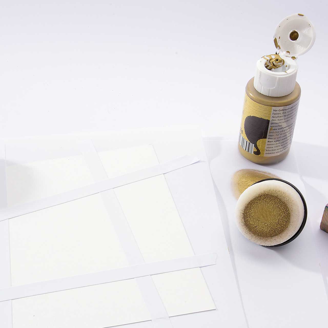 Verteilen Sie mit dem Schwämmchen die goldene Farbe mehr oder weniger gleichmäßig auf Ihrer Karte.